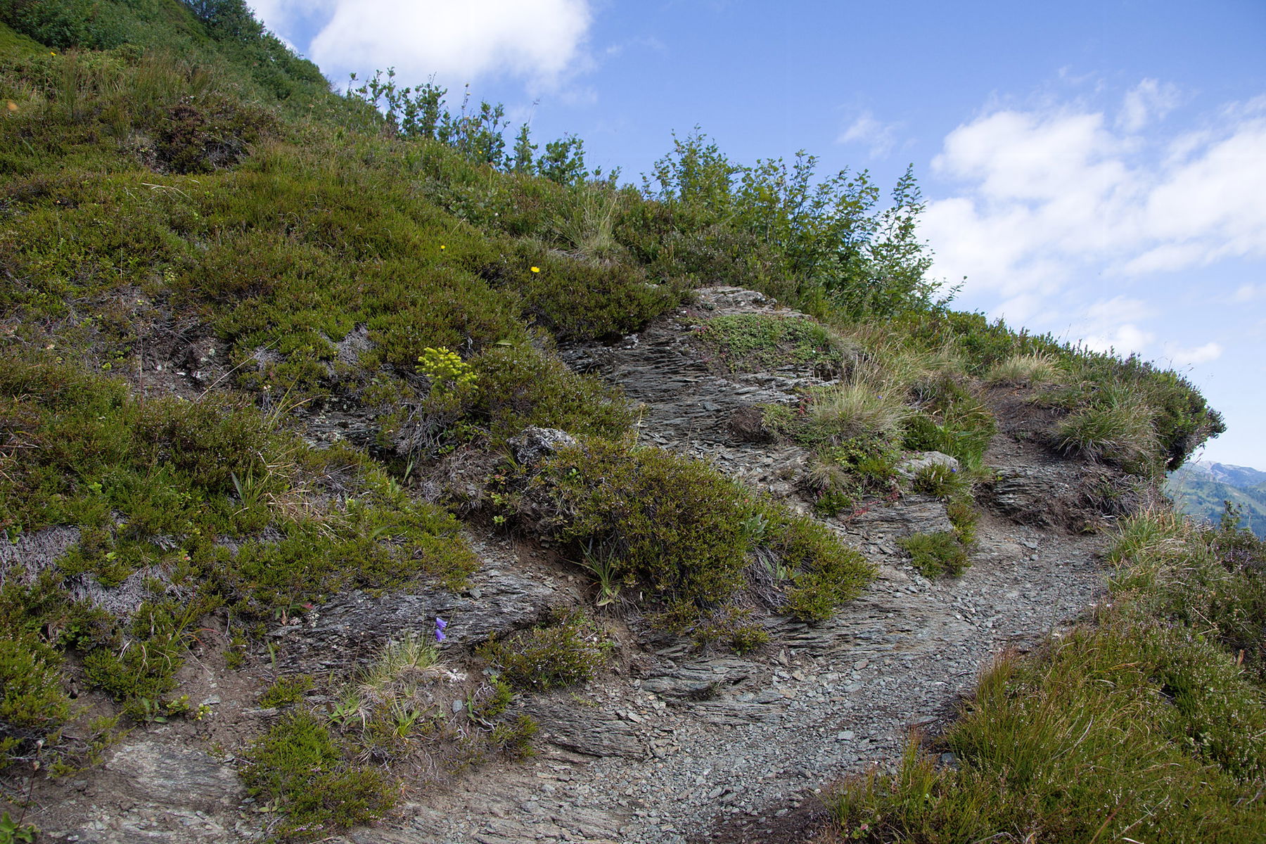 Der Pfad führt rechts unterhalb diesem vorbei. Ich hab es mir nicht nehmen lassen, drüber zu gehen. Würde es nicht mehr machen. Keine Markierung und Weg ersichtlich. Und auch anstrengend. Also auf dem Weg bleiben.