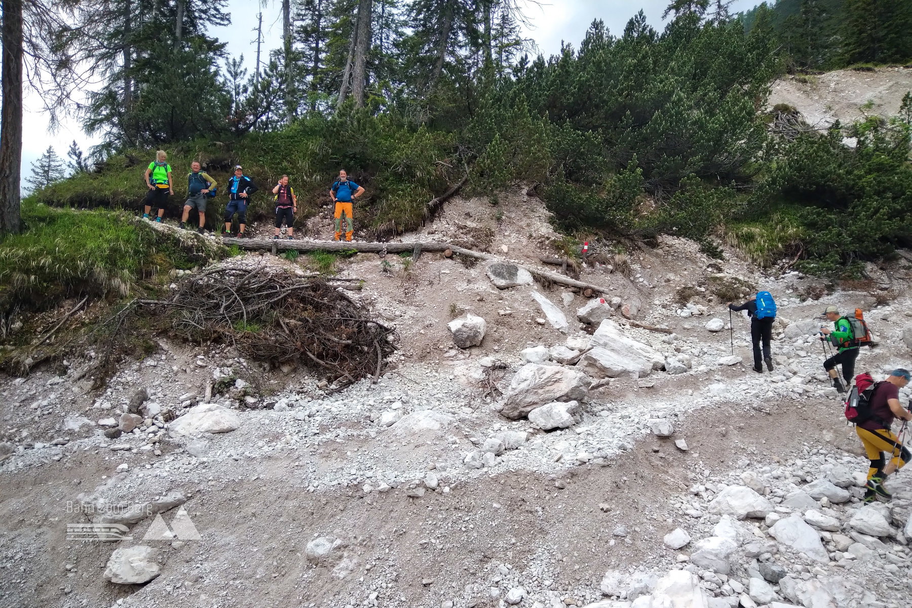 Wir erreichen das Val della Rienza und suchen einen Übergang über den Fluss. Heuer führen die Flüsse mehr Wasser als üblich, daher ist es gar nicht so leicht, den Fluss zu durchqueren.