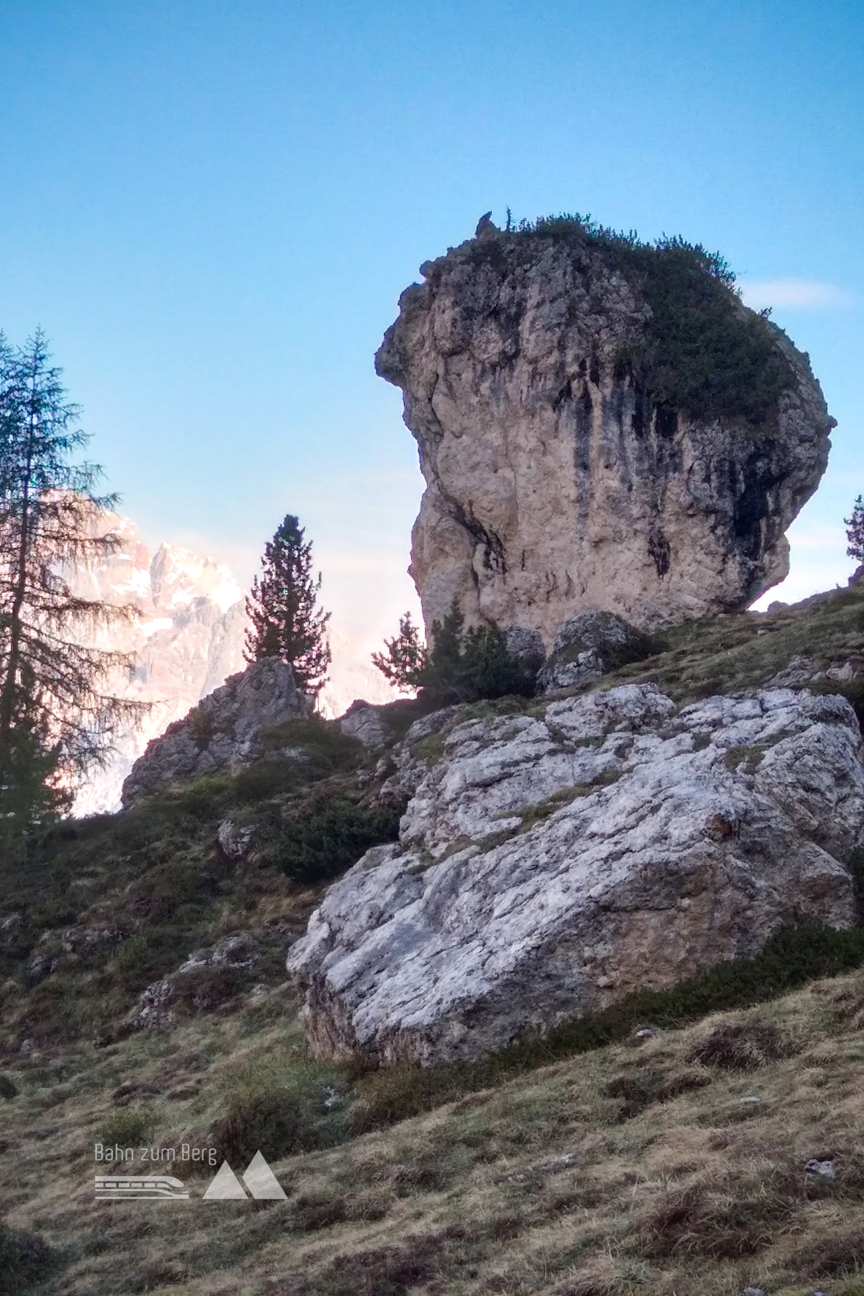Blick zurück zum Rifugio Flli. Fonda Savio; Felsformation beim Abstieg. Fotos: Herbert Fuchs