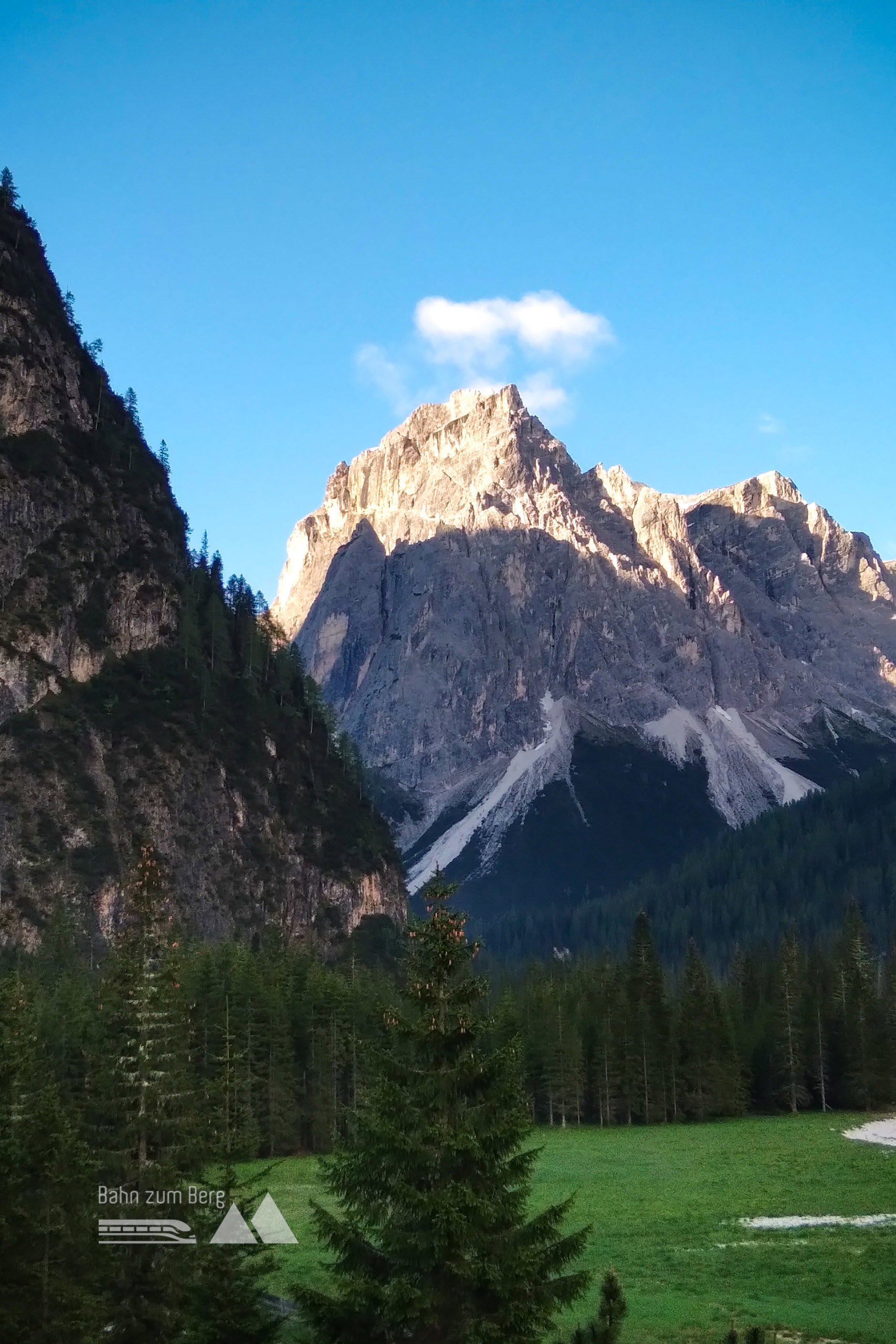 Vorbei an der Talstation der Seilbahn zum Monte Baranci gehen wir zur Riese Haunold Hütte, wo wir eine erste Rast einlegen.