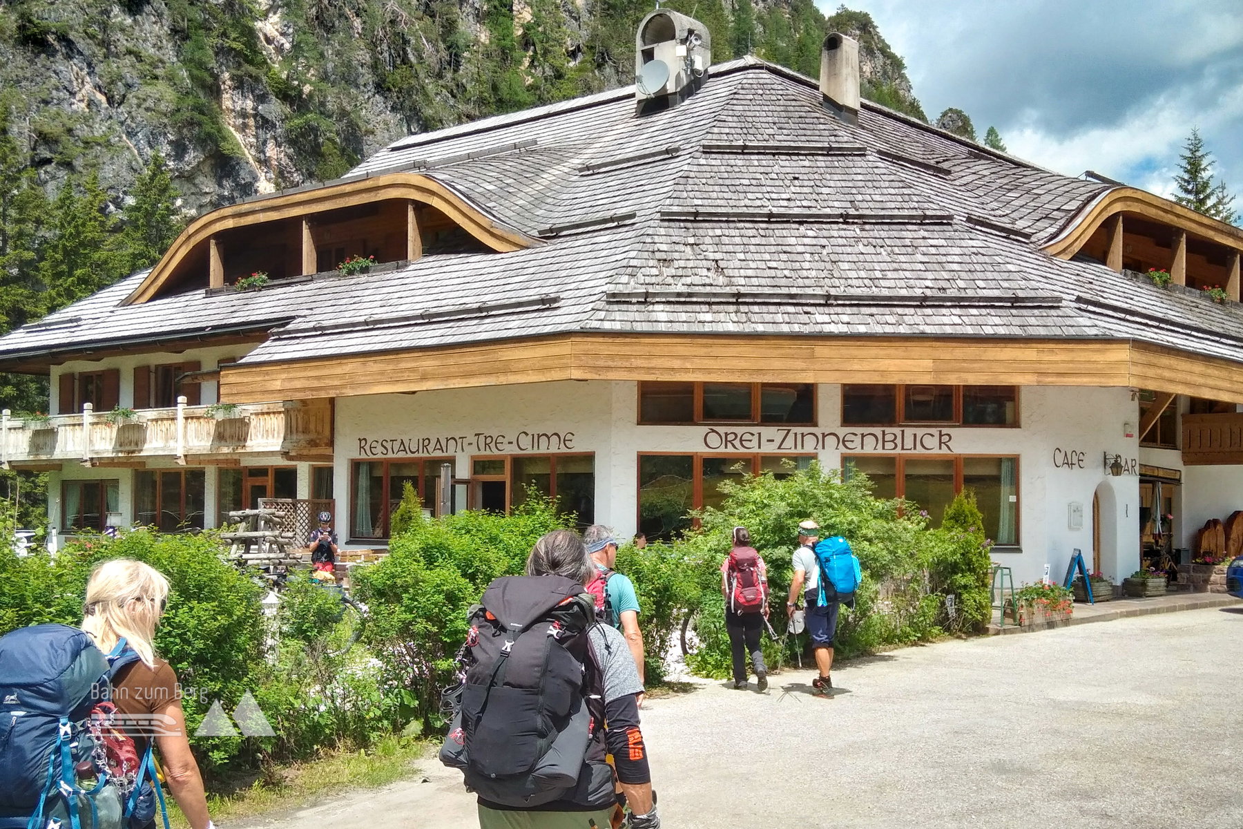 Schließlich erreichen wir das Restaurant „Dreizinnenblick“.