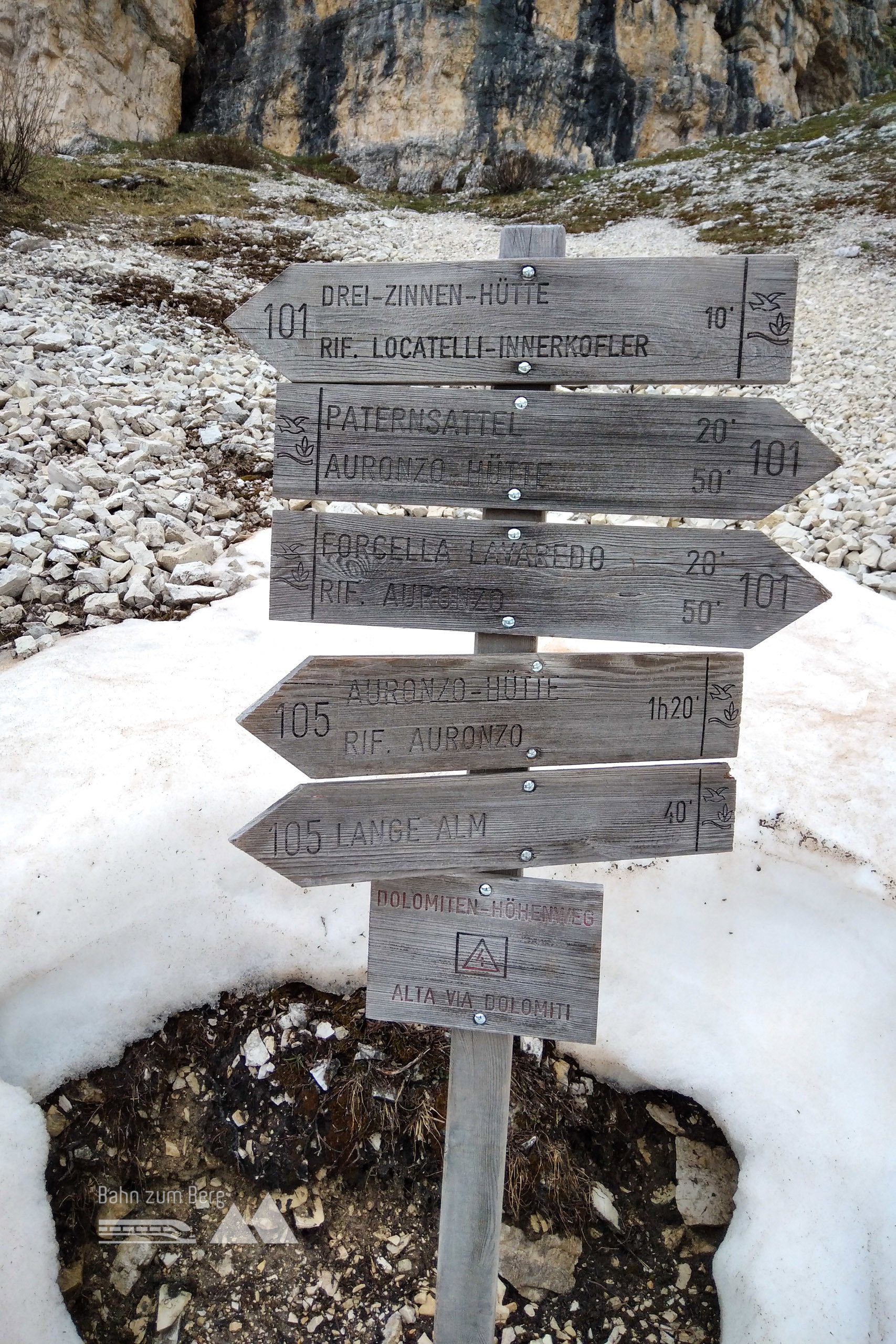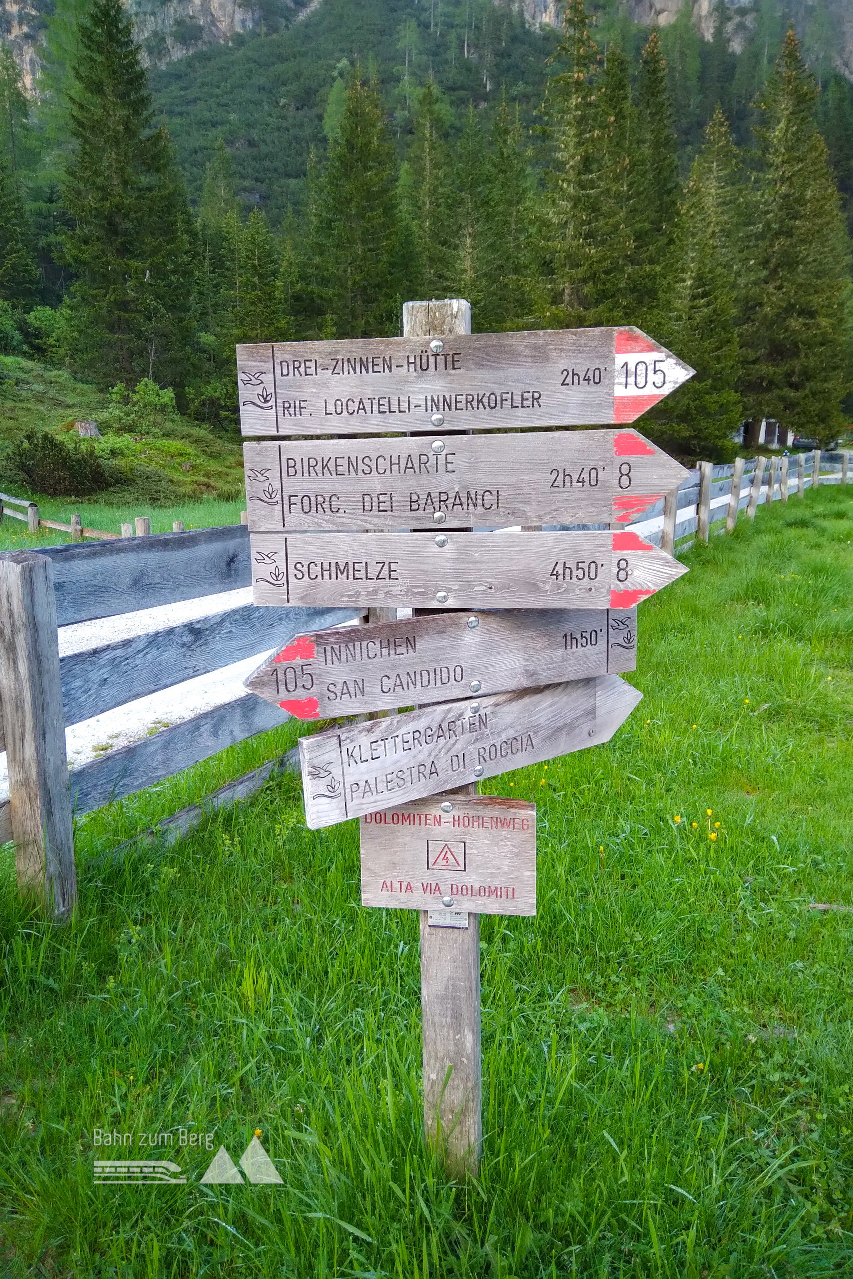 Am nächsten Morgen folgen wir dem Weg 105 Richtung Dreizinnenhütte.