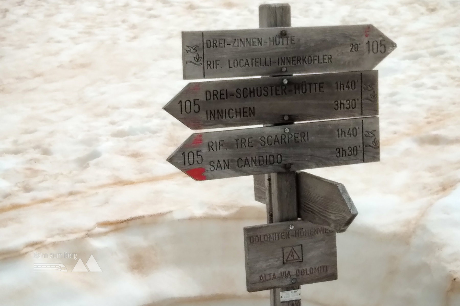 | Route | Innichen – Riese Haunold Hütte – Dreischusterhütte | Dreischusterhütte – Dreizinnenhütte – Lavaredo Hütte – Auronzo Hütte – Rifugio Flli. Fonda Savio | Rifugio Flli. Fonda Savio – Restaurant „Dreizinnenblick“ |