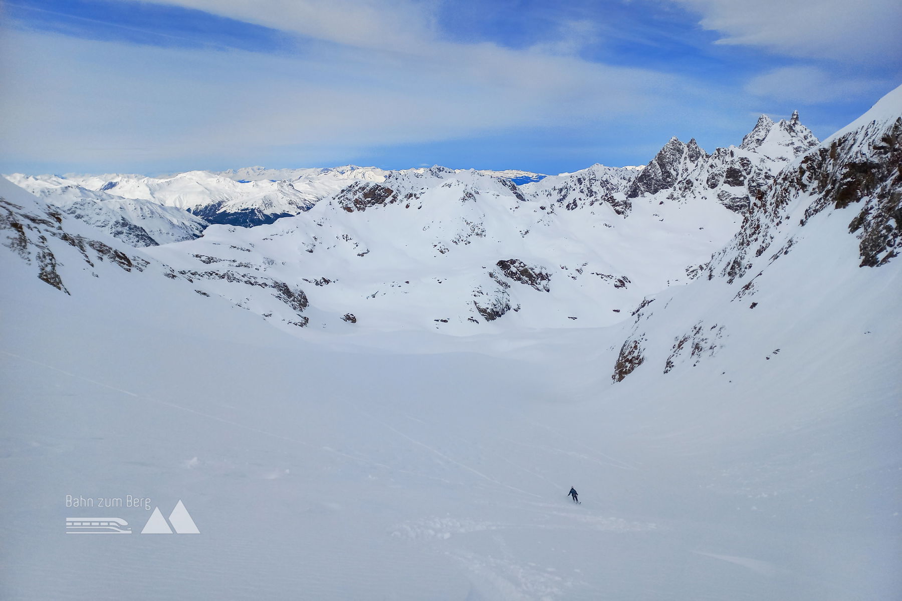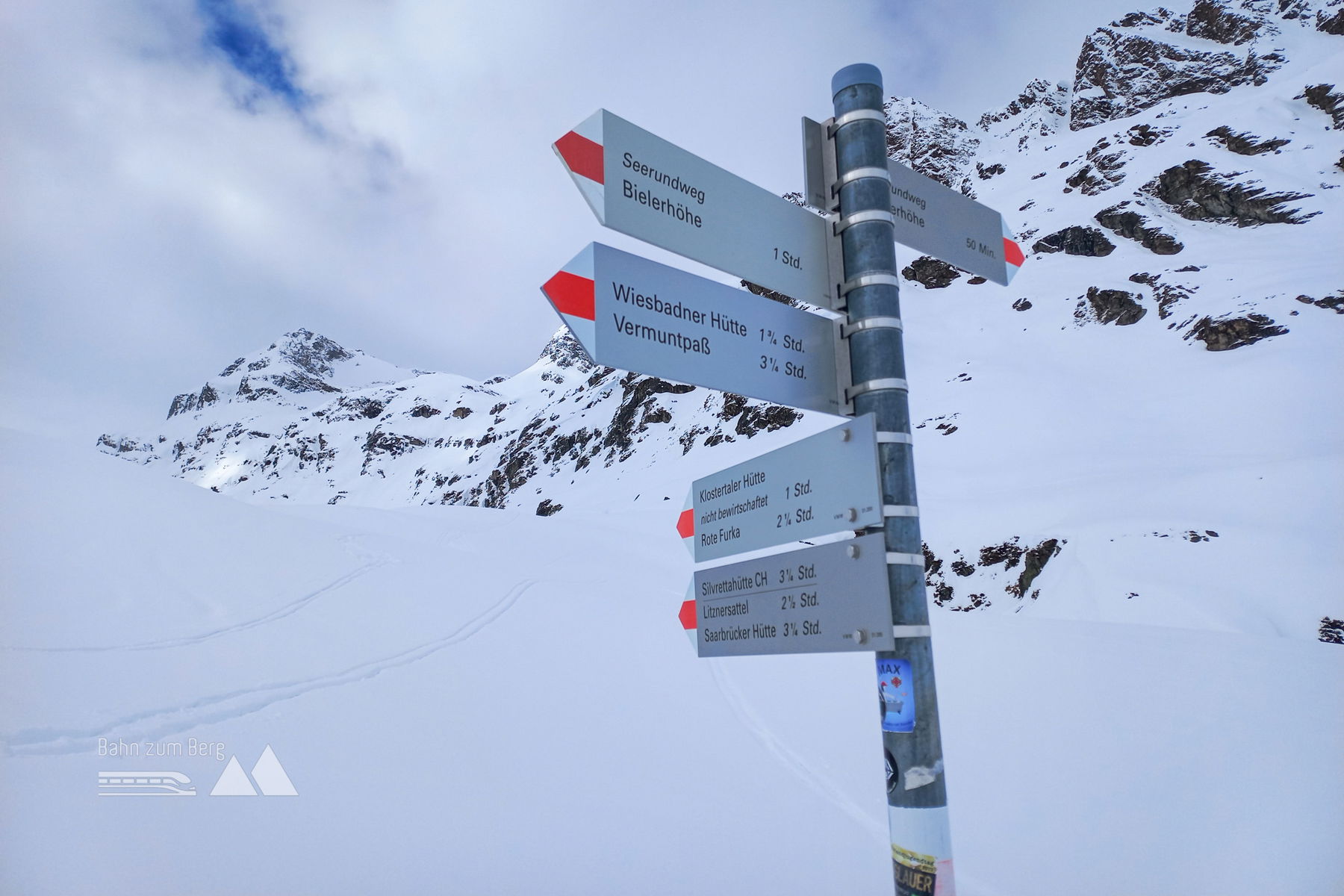 Variante: bei guten Schnee- und Lawinenverhältnissen (letztere hatten wir, erstere auf der betreffenden Höhe nicht) ist auch eine Abfahrt über das Untervermunt ins Montafon eine Option (Bushaltestelle Partenen Loch).