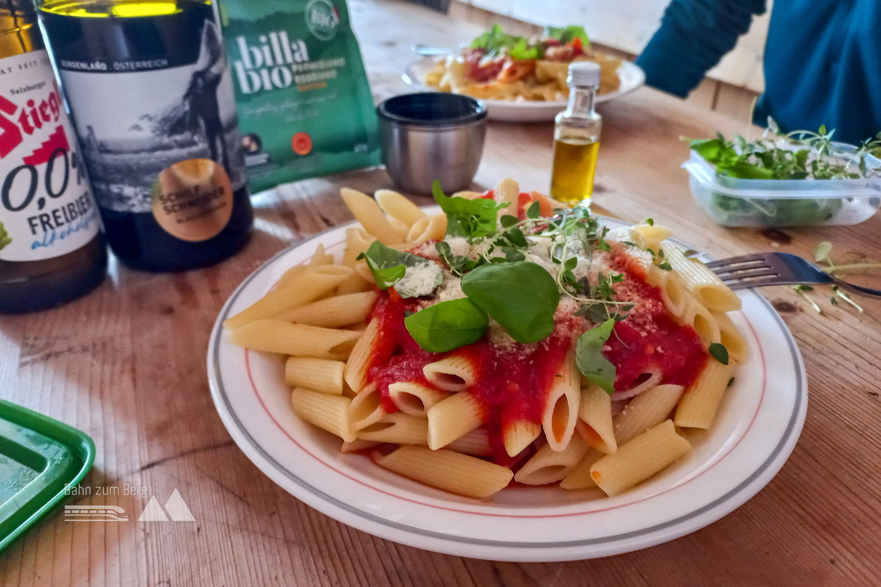 Als wir am frühen Nachmittag ankommen, ist schon gemütlich eingeheizt, aber nur ein weiterer Gast auf der Hütte – später wird die Bude jedoch voll werden.