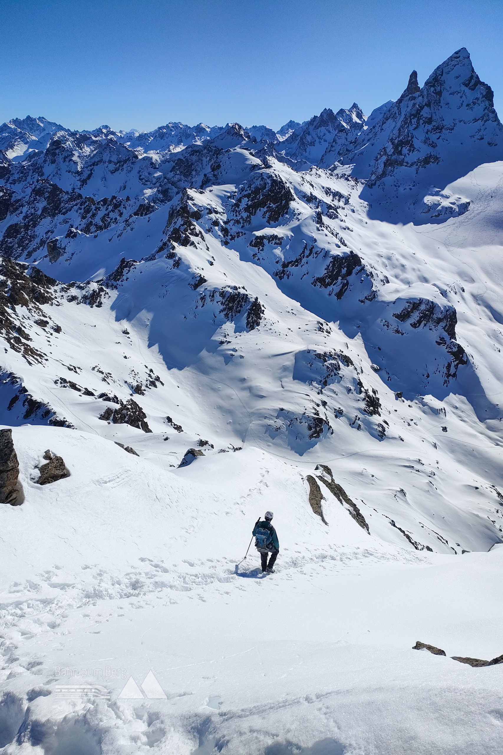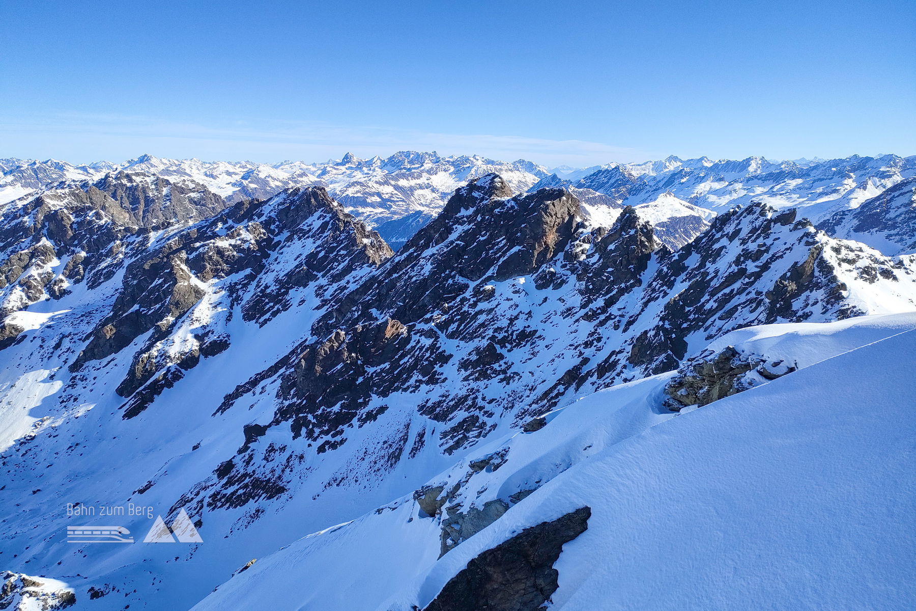 Eine famose Tour mit weitgehender Berg-Einsamkeit, Prachtpanoramen, wunderbarem Winterraum und großartigen landschaftlichen Eindrücken! Bei feinen Schneeverhältnissen sicher noch mehr Abfahrtsvergnügen – andererseits braucht es hier auch wirklich gnädige Lawinenverhältnisse (wir hatten sowohl in Vorarlberg als auch auf Bündner Seite an beiden Tagen einen glatten 1er). Für bequeme Abfahrts-Aficionados eher wenig geeignet. Den zumindest halbwegs versierten, ganzheitlichen Skitourengeherinnen und –gehern mit einem gewissen Biss bietet diese Tour hingegen ein hohes Potenzial für viele Freudenmomente.