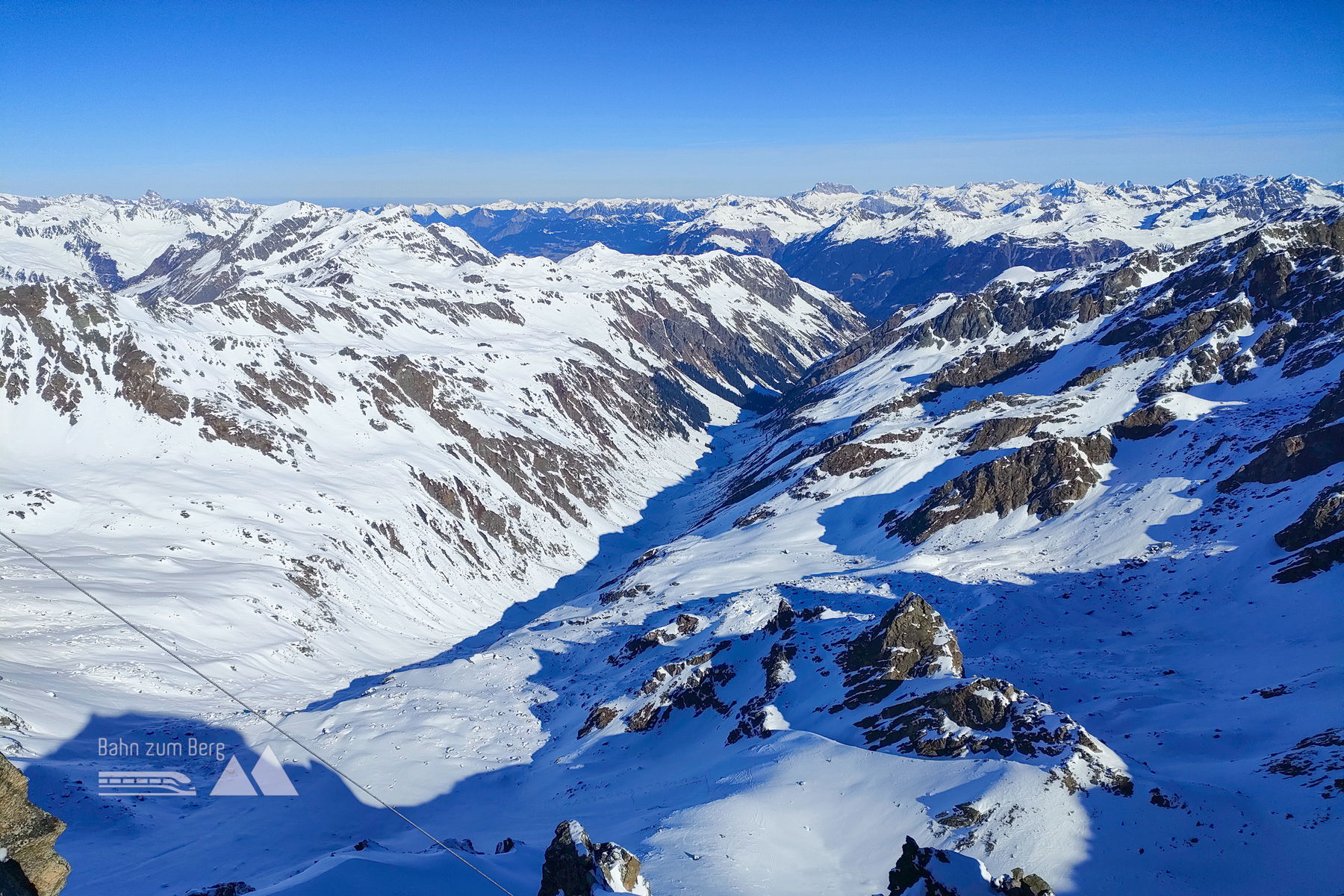 Nicht zuletzt dank Prachtwetter an diesem Vormittag gibt es für uns jedenfalls wirklich ein unvergleichliches Traumpanorama. In „näherer“ Umgebung ragen neben den schon genannten z.B. der Piz Linard, die Fluchthörner (Silvretta), der Patteriol und die Kuchenspitze (Verwall), die Rote Wand (Lechquellengebirge), die Sulzfluh, die Drei Türme, die Schesaplana und die Zimba (Rätikon) hervor, in „zweiter Reihe“ z.B. die Weißkugel, Verpeil- und Watzespitze (Ötztaler Alpen), die Bernina, der Piz Kesch und der Tödi, und im Hintergrund ist sogar die stolze Pyramide des Finsteraarhorns im Berner Oberland zu sehen!