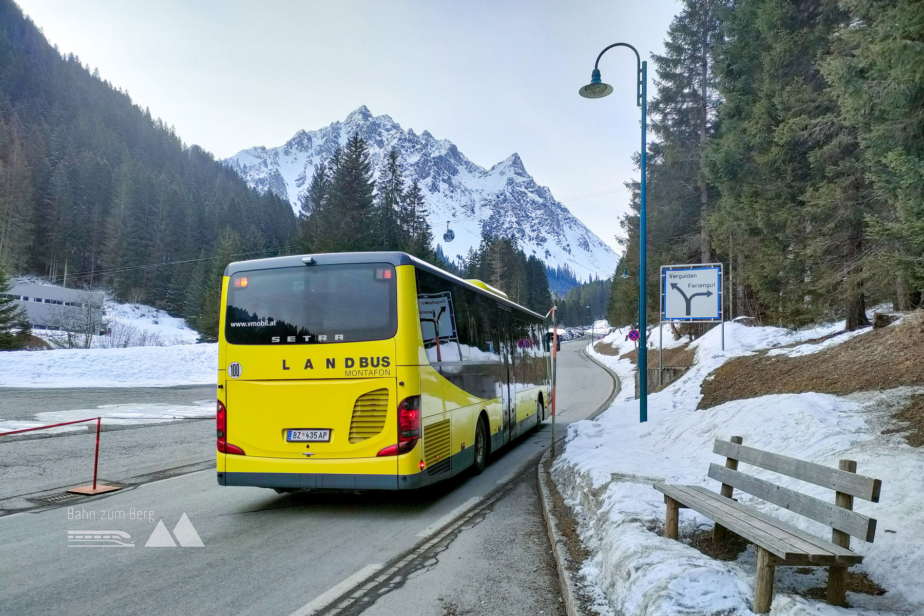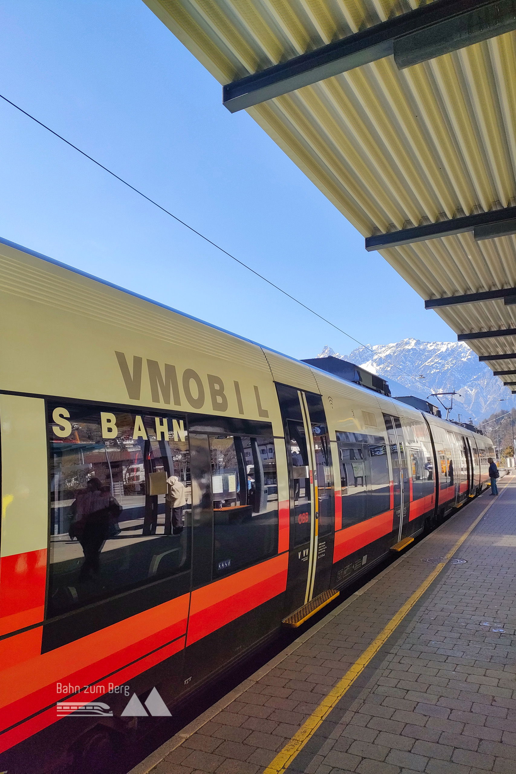 Vom Fernverkehrs-Bahnhof Bludenz geht es zunächst mit der „Muntafunrbaa“ nach Schruns, der ÖV-Mobilitätsdrehscheibe im Montafon. Im Zug wird gleich einmal aufgefellt. In Schruns gäbe es die praktische Möglichkeit, im Einkaufszentrum direkt neben dem Bahnhof noch fehlende Lebensmittel oder Ausrüstung zu besorgen. In unserem Fall wird es aber einfach ein gemütlicher Besuch in der Bäckerei nebenan.