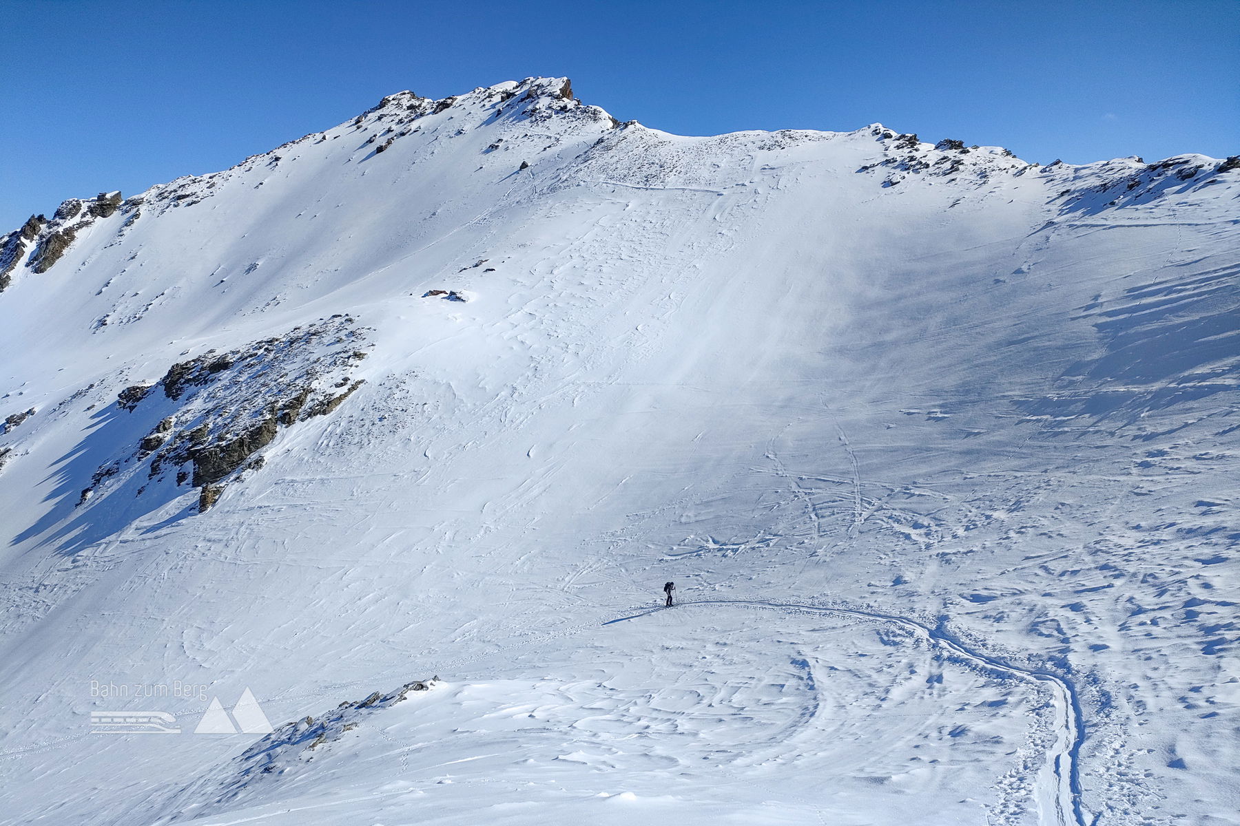 Variante/Hinweis: Je nach Verhältnissen und alpiner Erfahrung könnte auch bereits das Plattenjoch das Tagesziel sein – ein wahrlich lohnendes, sei dazugesagt – oder es sind möglicherweise für den Gipfel Steigeisen und Pickel geboten!