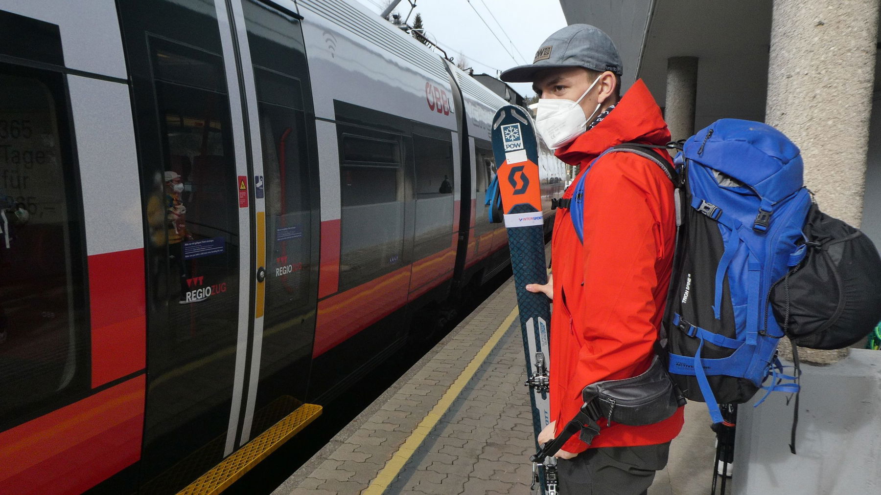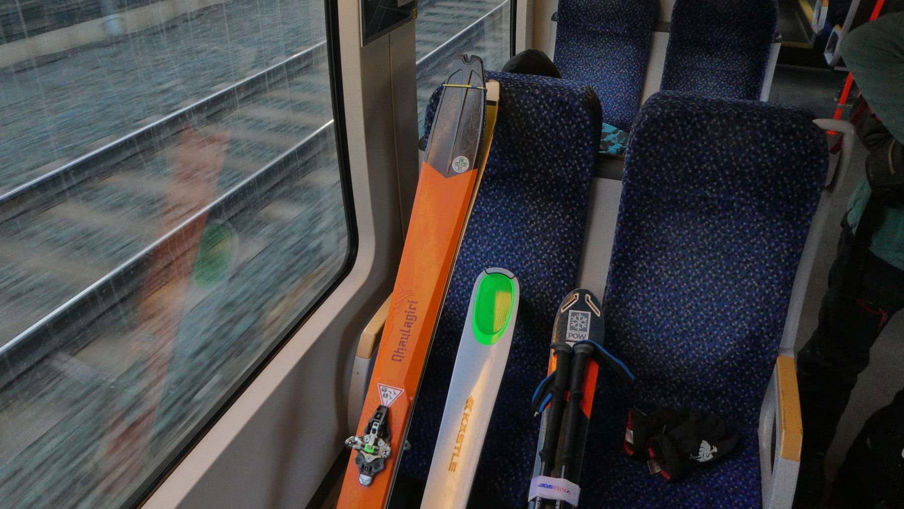Wir treffen uns am Bahnhof in Matrei am Brenner. Angenehm, wenn Pünktlichkeit auf beiden Seiten zu finden ist: Bei der Gruppe (Susanne, Thomas, Anna, einer Bekannten von Thomas, die ab heute mit von der Partie ist, Thomas, unser Guide und ich) und bei der Bahn, die uns um 09:06 Uhr aufnimmt und nach Steinach am Brenner bringt. Auch die Skier sollen ein gemütliches Plätzchen bekommen.