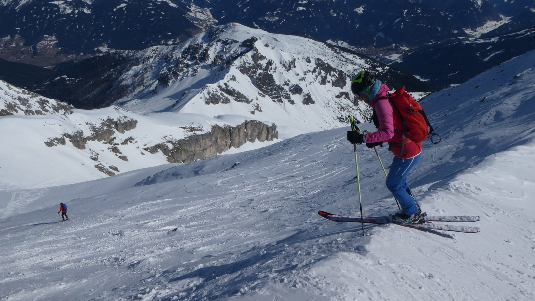 Abfellen – und hinunter vom Joch in die herrlichen Hänge der Falschwernalm: ab die Post!