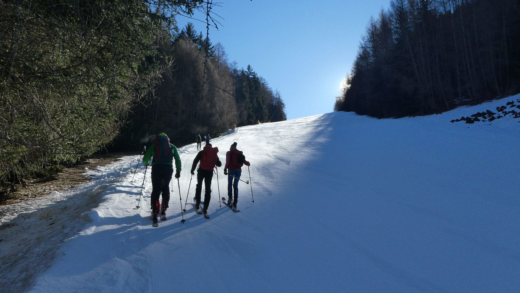 Die Abfahrt nun bietet Ungewöhnliches, oder hast Du schon mal eine Rodelbahn als Tourenabfahrt „missbraucht“?