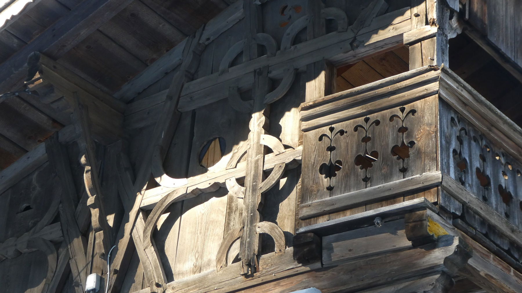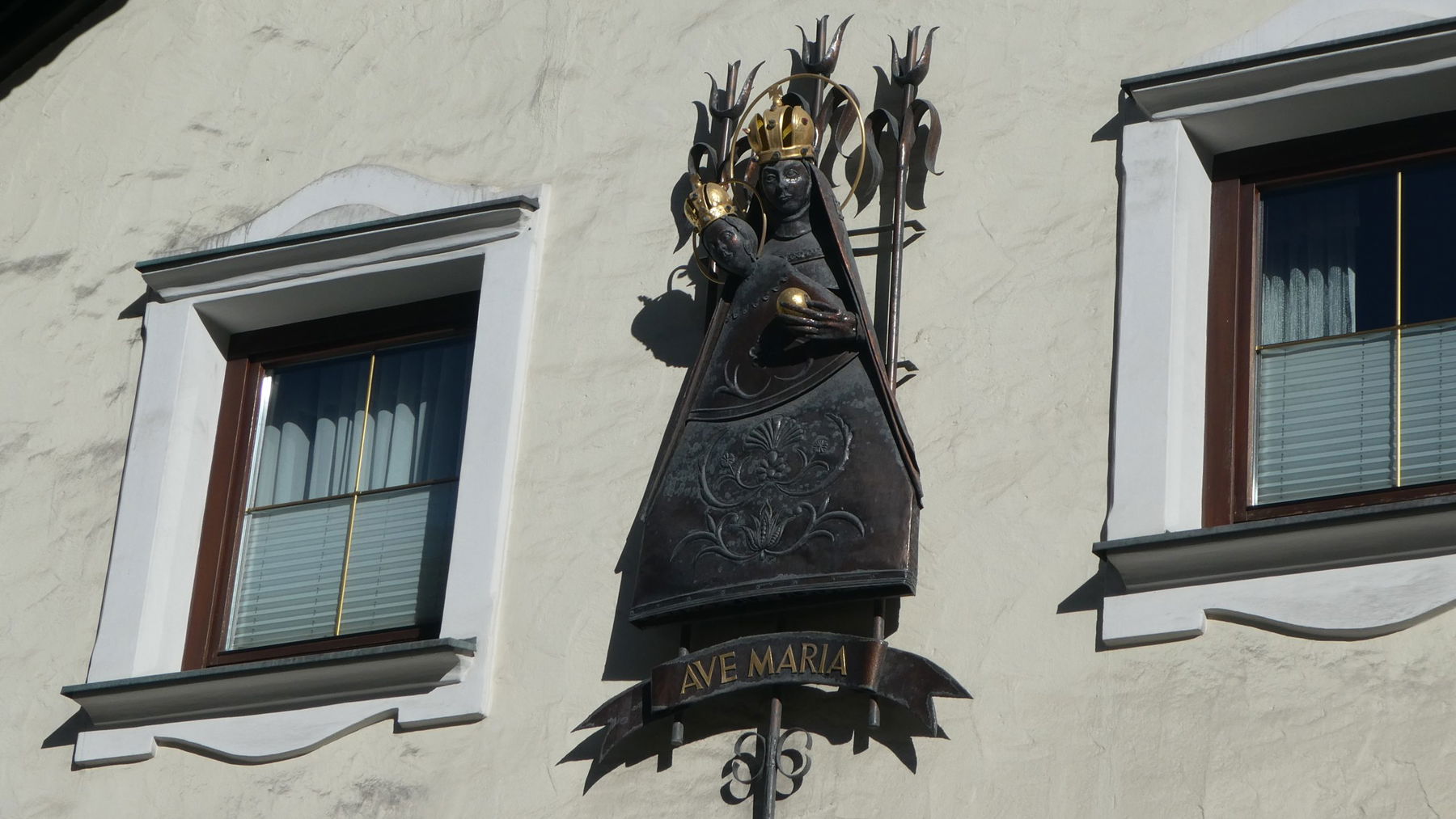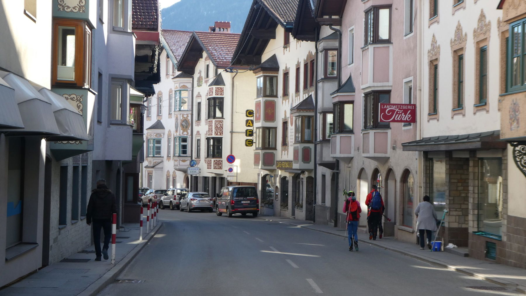 Peter marschiert in flottem Schritt mit uns nach Matrei und zurück zum Parkhotel, das wir aufgrund der ausführlichen Rasten erst gegen 15 Uhr erreichen. Als der Rucksack mit den Skiern am Rücken zu drücken beginnt, unterhalte ich mich mit kunstvollen Malereien und Hauszeichen.