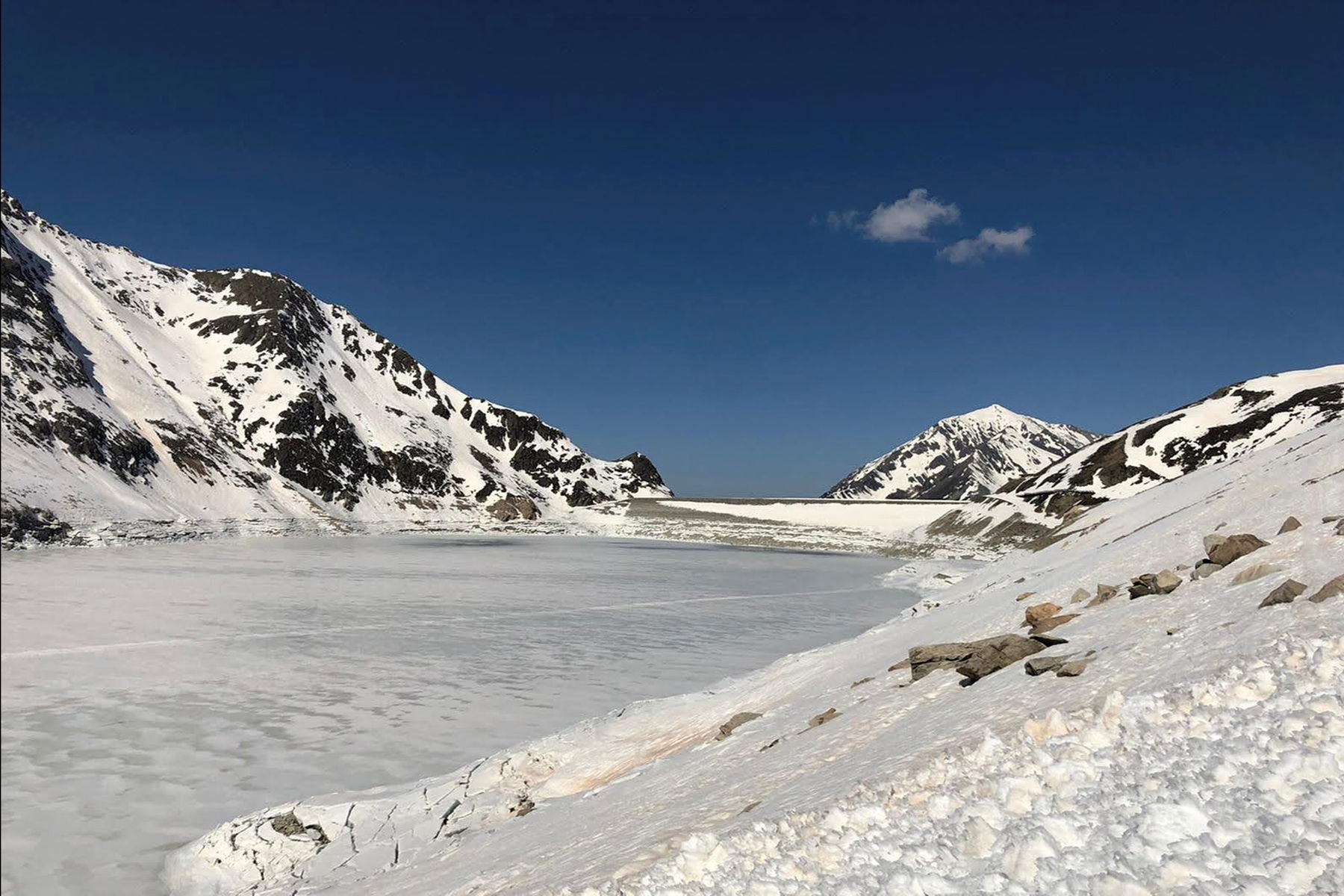 Bei der Staumauer angekommen, wandert man am östlichen (linken) Seeufer im leichten Auf und Ab unterhalb von Lawinenschutzverbauungen zum Stauseeende. Beim Rückweg hat man hier einen etwas lästigen Gegenanstieg zu bewältigen, auf den man sich schon jetzt einstellen kann. Also mit Köpfchen etwas die Kraft einteilen. Wenn das Eis dick genug ist, also nach langen trockenen und kalten Wetterperioden kann man auch über den gefrorenen Stausee sowohl beim Auf- als auch beim Abstieg die lästigen Gegenanstiege abkürzen.