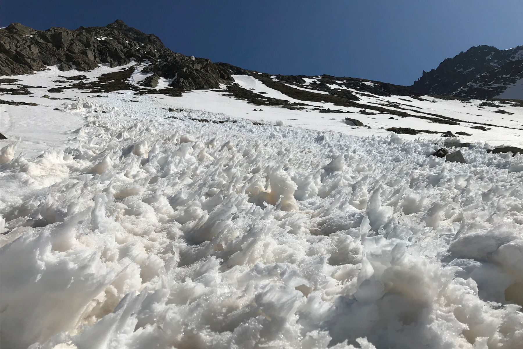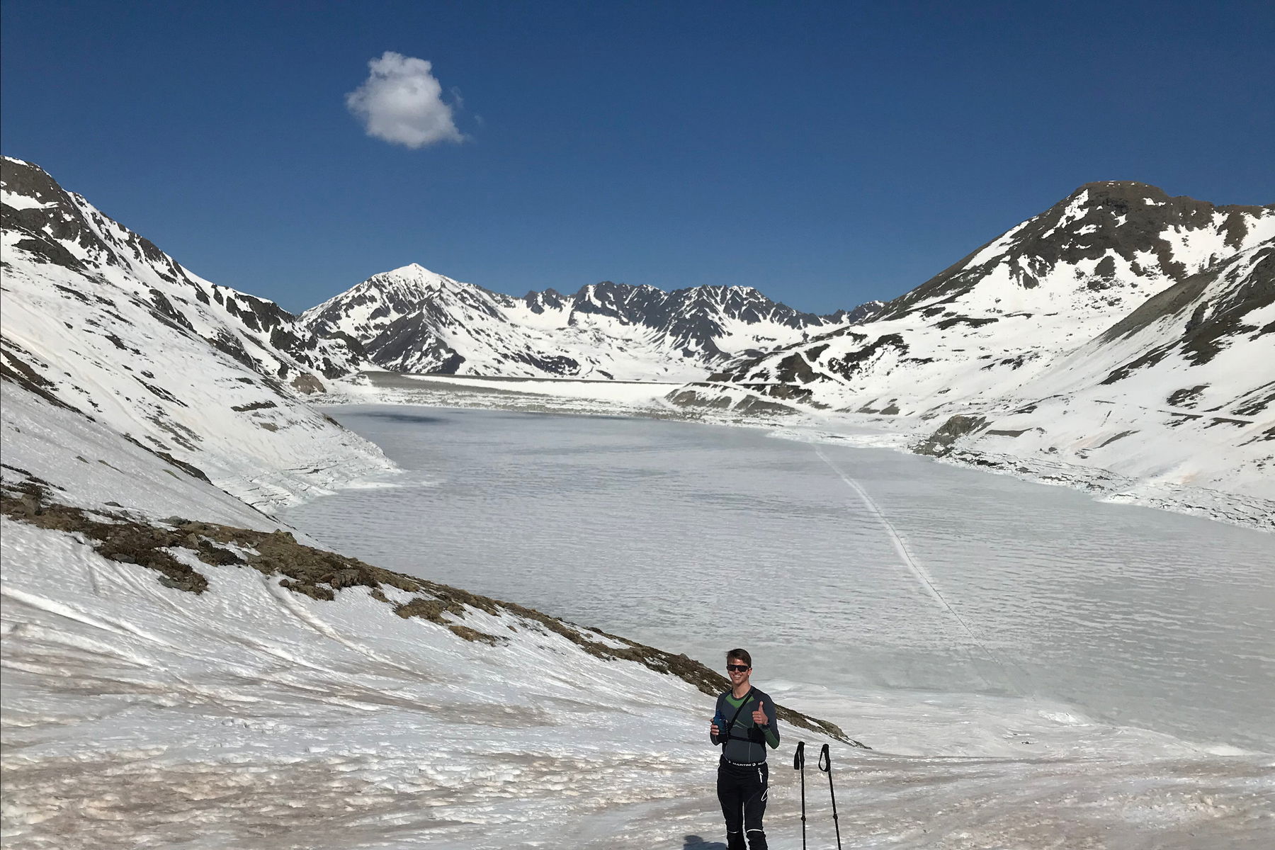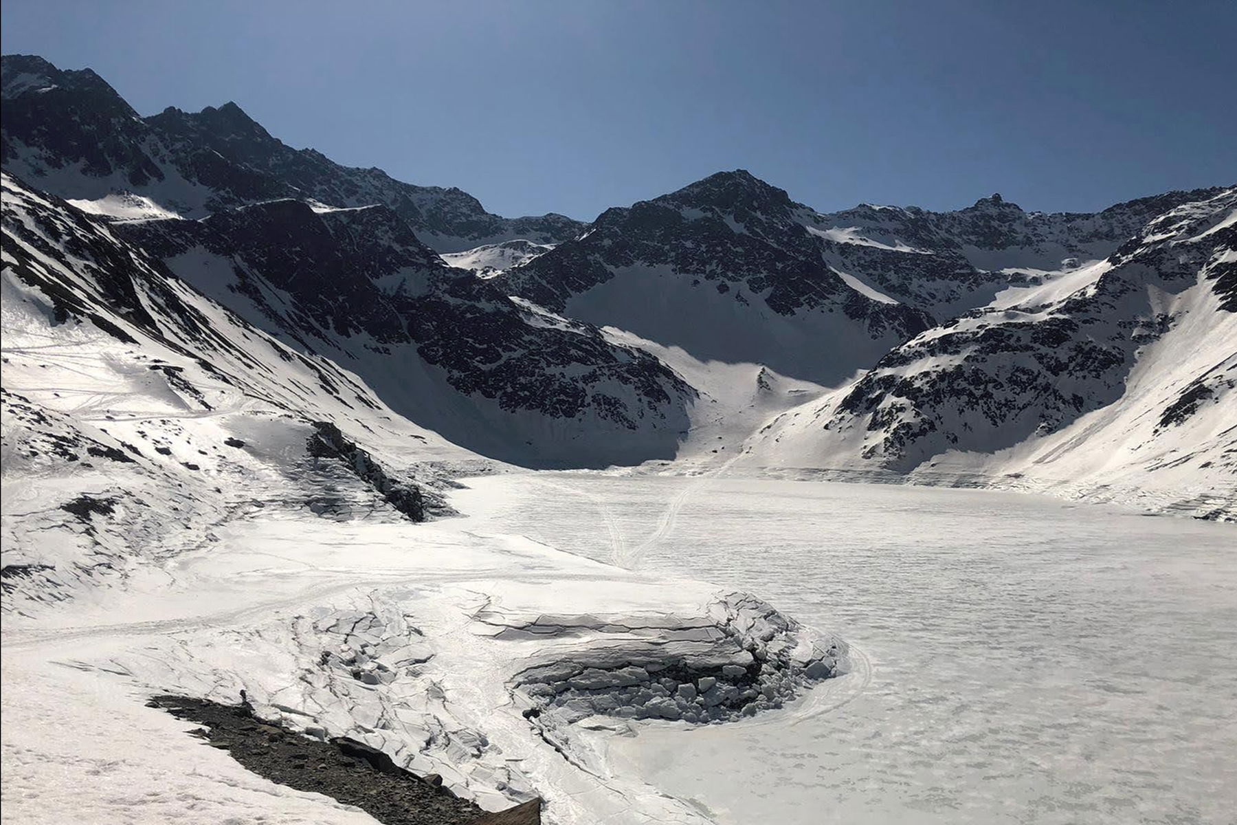 Die Steilstufe unterhalb der Staumauer ist hier gut abstuft und bei guten Bedingungen nicht allzu schwierig zu überwinden. Bei härteren Schneeverhältnissen, insbesondere nach langen Trockenperioden, bei Tauwetter tagsüber und Frost in der Nacht braucht man hier das erste Mal Steigeisen.