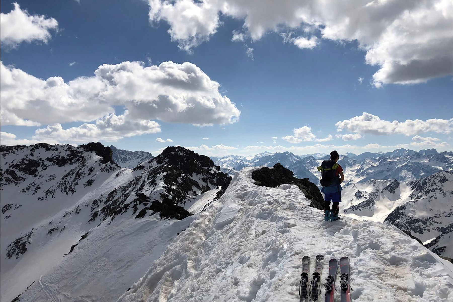 Meist muss man hier am Sattel ein Skidepot errichten und über den breiten Südrücken in wenigen Minuten aufwärts zum Gipfelkreuz aufsteigen. Oben angekommen kann genießt man bei guten Wetterverhältnissen eine tolle Fernsicht auf die umliegenden Gipfel der Stubaier Alpen im Osten und Süden, der Ötztaler Alpen im Südwesten und Westen, des Karwendel und der Lechtaler Alpen im Nordwesten und Norden. Im Osten blickt man hinab ins Inntal.