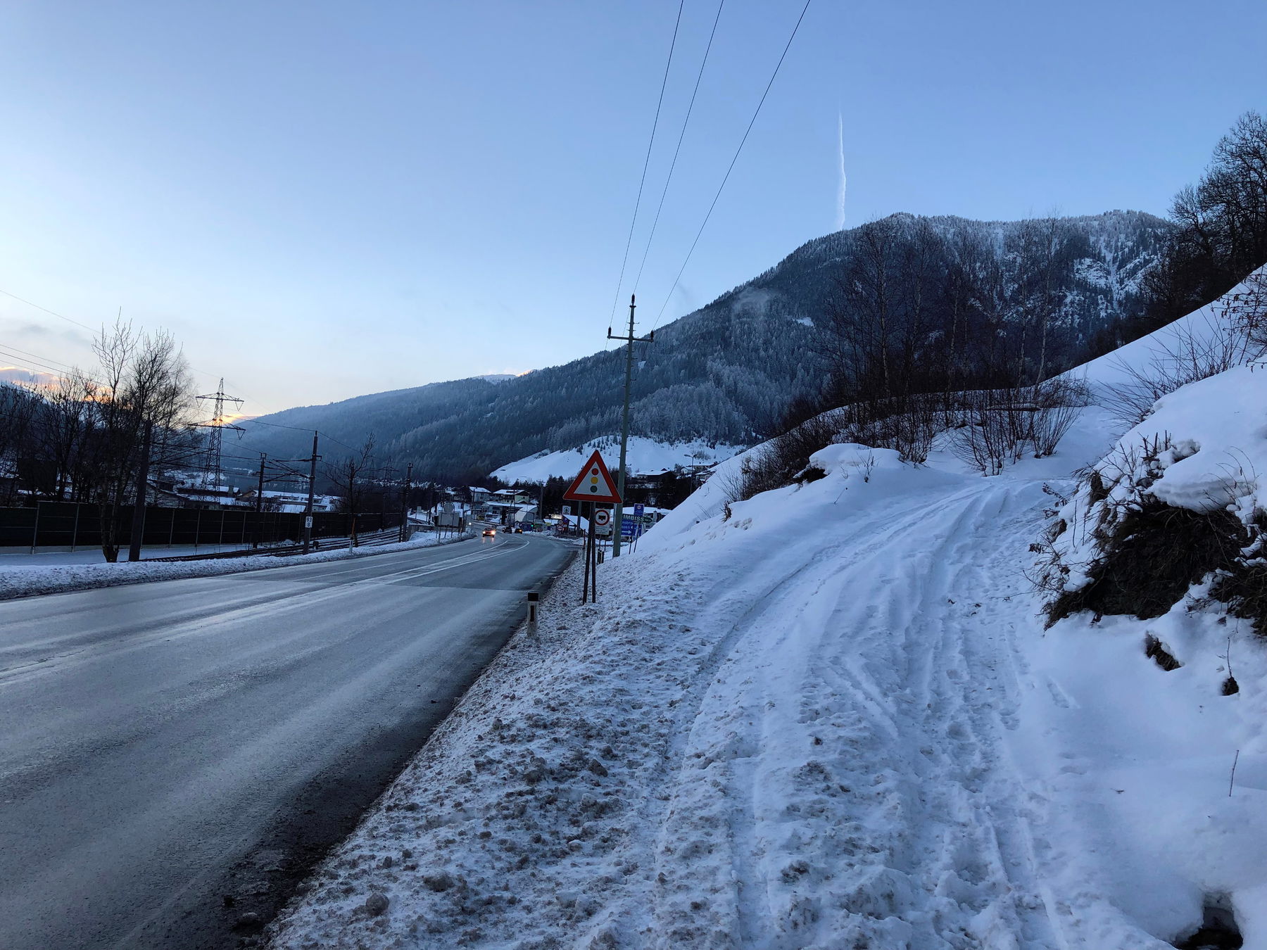 Während des Aufstiegs haben wir leider bemerkt, dass wohl von den früheren Niederschlägen im November kein Schnee auf diesem Berg übrig geblieben ist, was den Abfahrtsgenuss ein wenig schmälerte. Man ist doch bis zum Gipfel durchgehend in einem ostseitig ausgerichteten Wald unterwegs. Leider war an diesem Tag auch auf der Nordseite nicht viel mehr Schnee zu finden. Hier bietet sich ansonsten eine schöne Routenvariante in Richtung des Klosters “Maria Waldrast” an.