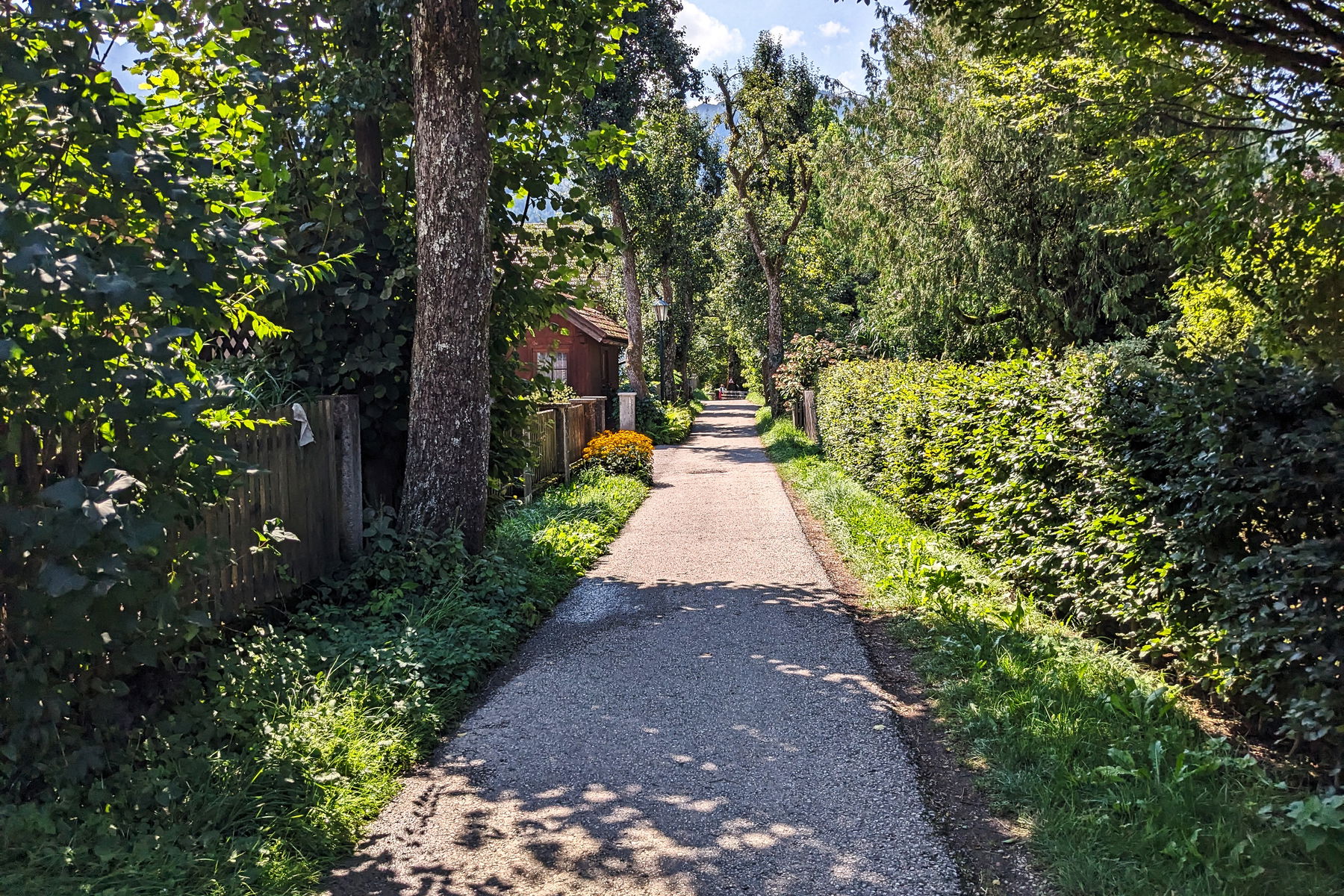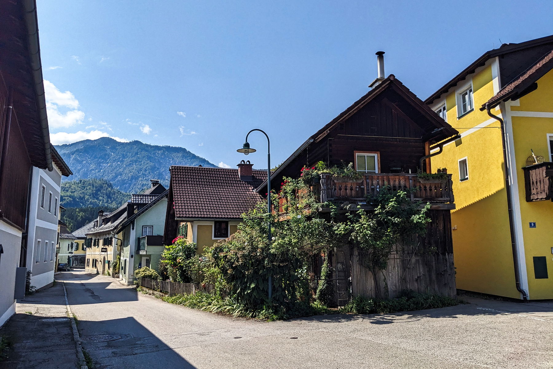 Viele Wege führen nun zum Bahnhof, hier wurde eine Variante entlang des Hangfußes gewählt, um dann auf kürzestem Wege durch das Dorfzentrum zum Zug zu gelangen. (Karl-Pilz Rundweg und später Richtung Zentrum entlang einer Gartenhecke hinunter zum Talboden). Wer noch Zeit hat bis zur Abfahrt ist gut beraten, durch Bad Goisern nicht den direktesten Weg zu nehmen. Die historischen Gebäude und gepflegten Höfe sind ein herrlicher Anblick. Und wer genauso viel Glück hat wie wir und während der “Goiserer Gamsjagertage” die Wartezeit herumbringen muss, kann noch die Gastfreundlichkeit im Salzkammergut zwischen gut gefüllten Bierbänken genießen!