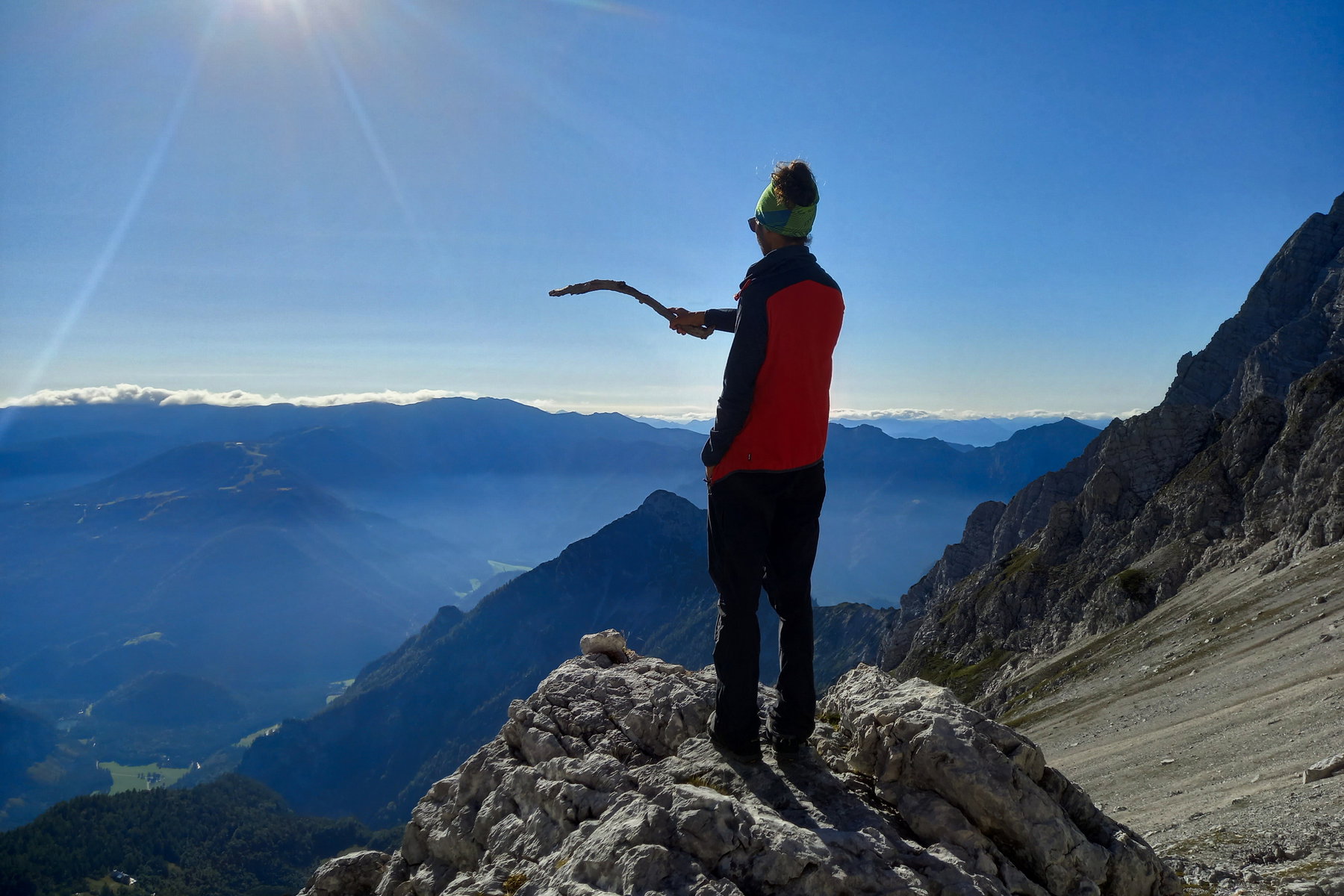 Um 7:30 Uhr starten wir unsere Wanderung – über den Normalweg auf den großen Priel. Nach einigen steinigen Serpentinen erreichen wir nach gut 2 Stunden unseren ersten Pausenplatz – den Jausenstein.