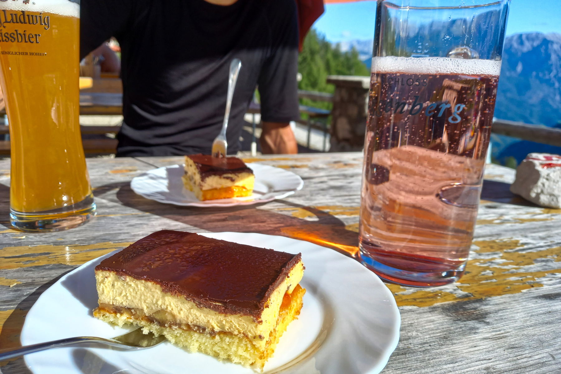 Um 15:30 sind wir wieder am Prielschutzhaus angekommen und folgen dem Motto der Hütte “Kuchen hat wenige Vitamine, darum muss man viel davon essen”.
