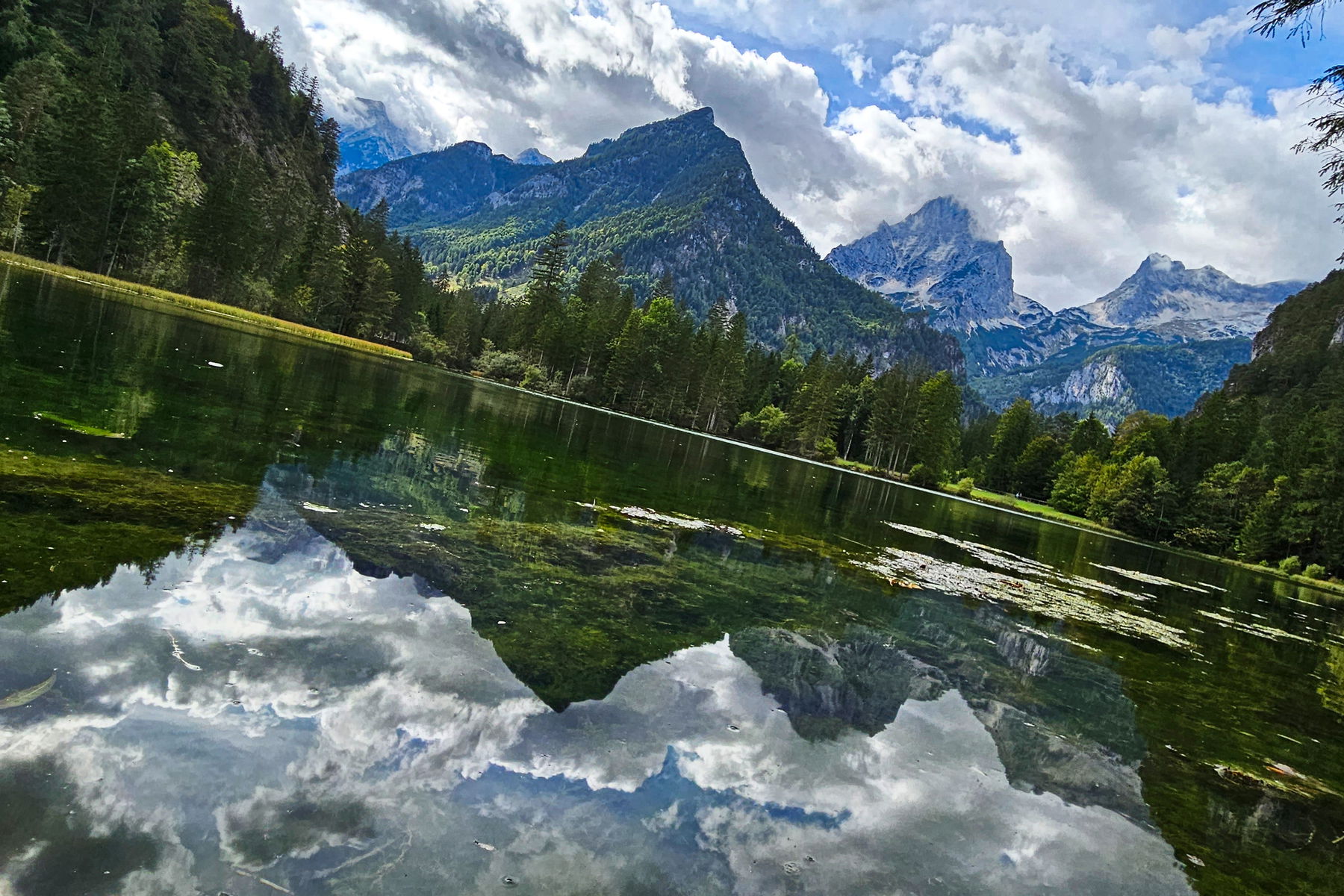 Von der Ortsmitte aus folgen wir einem schönen Wanderweg bis zum Schiederweiher, ein sehr beliebter und oft fotografierter Spot. In dem klaren Wasser spiegeln sich die Gipfel des großen Priels und der Spitzmauer – eine malerische Landschaft.