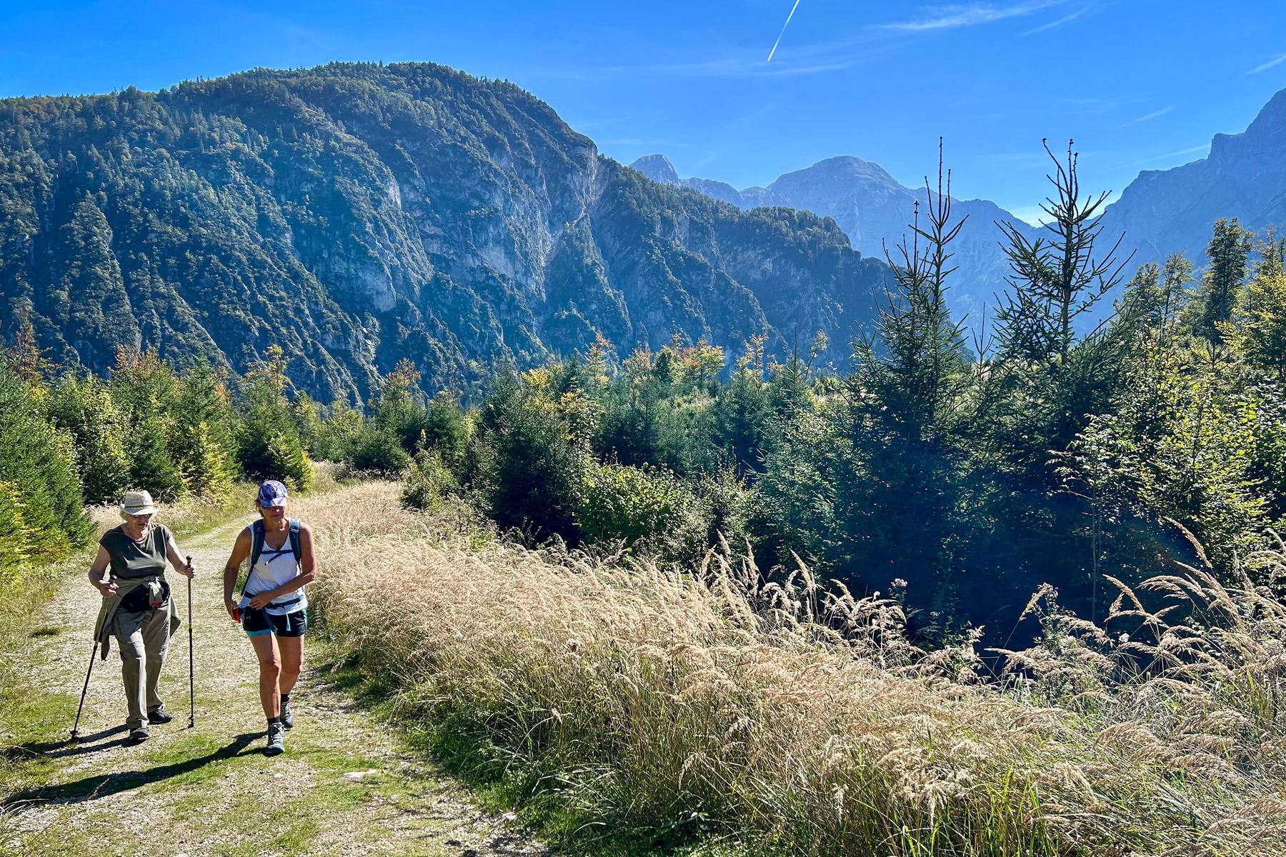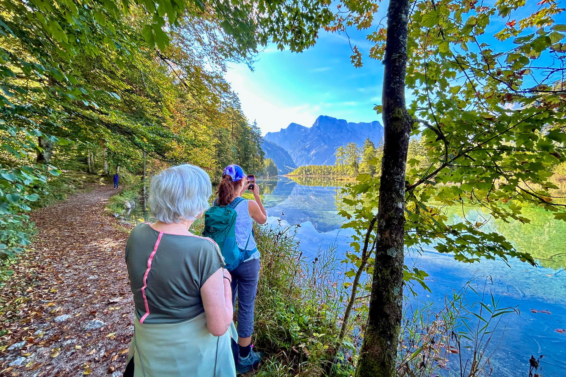 Mama, Schwester und ich haben uns eine erweiterte Runde ausgesucht, um nicht den See-Rundgweg zwischen Landesstraße und See zurück gehen zu müssen. Unsere Routenwahl ermöglicht auch den Aufstieg zum Ameisstein, der einen prachtvollen Blick über den See und das Tote Gebirge bietet.