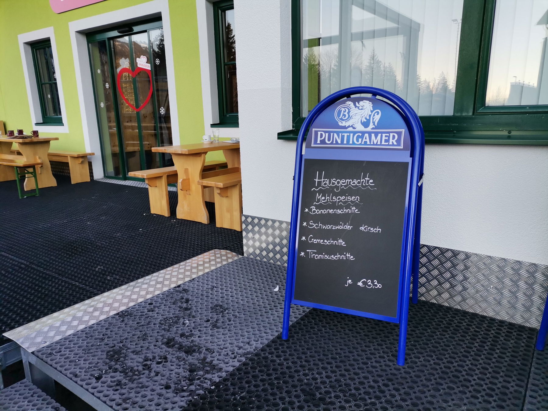 Im Teichstüberl lässt sich die Wartezeit auf den Bus gut steuern und verbratene Kohlehydrate wieder auffüllen. Ich verabschiede mich von Barbara. In der Dämmerung gehe ich dann hinüber zur Bundesstraße, wo die Busstation ist.