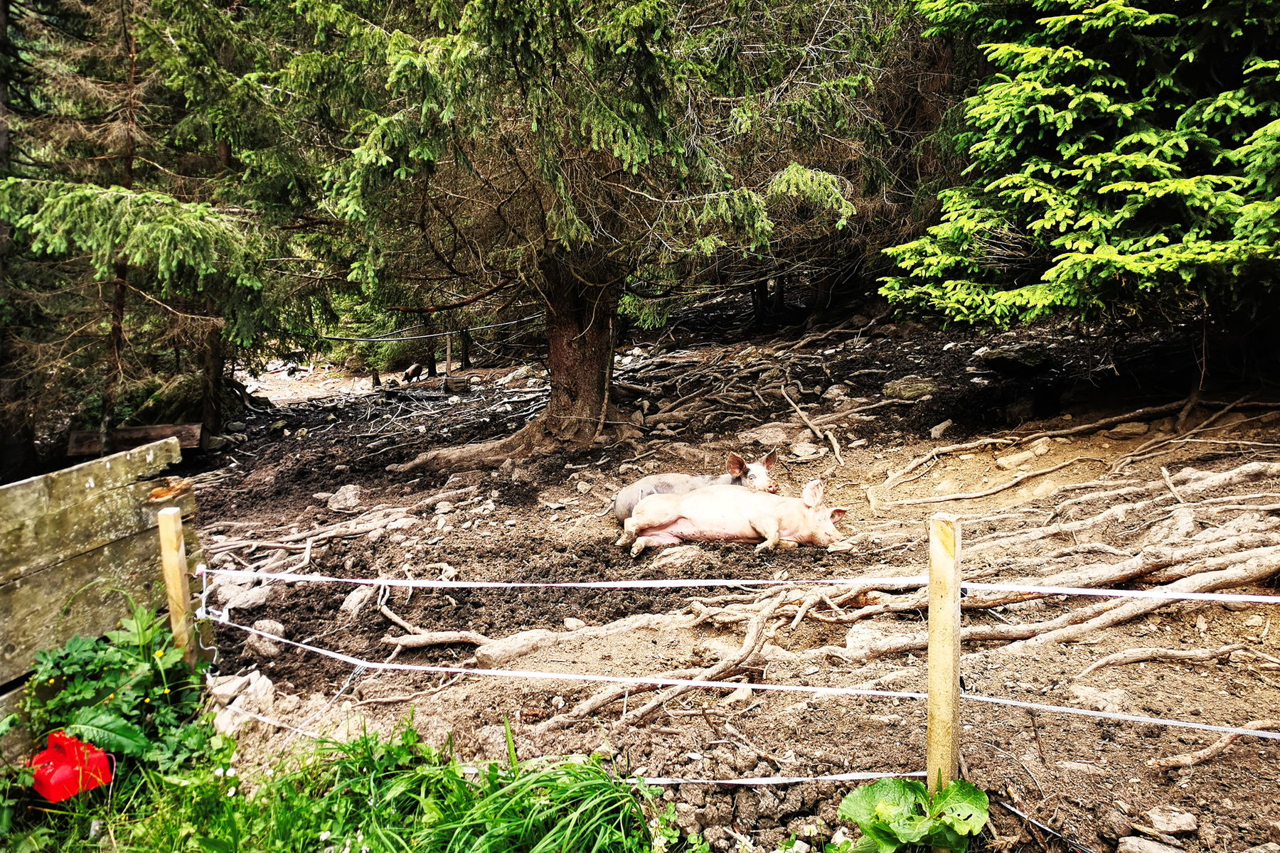 „Seit nunmehr 23 Jahren sind wir hier auf der Alm und bewirten jeden Sommer unsere Gäste mit Almköstlichkeiten. Mittlerweile sind es fast mehr E-Biker als Wanderer, die zu uns kommen“, erzählt Erika. Ich frage den Sohn Rupert, ob die Alm denn der Familie Liener gehöre. „Nein, das gesamte Gebiet gehört dem Österreichischen Bundesheer. Einige Naviser Bauern haben die Alm gepachtet und ich und mein Neffe sind als Hirten angestellt und dürfen eben auch einen Ausschank machen. Meine Mutter hilft uns dabei. Das Gebiet rund um unsere Alm ist nämlich ein militärisches Übungsgebiet. Manchmal wird hier auch geschossen, aber da werden wir vorgewarnt. Früher war das öfter mal der Fall, heute kaum noch.“ Auf das Übungsgebiet weisen gelbe Schilder hin, die uns bereits am Hinweg aufgefallen sind.