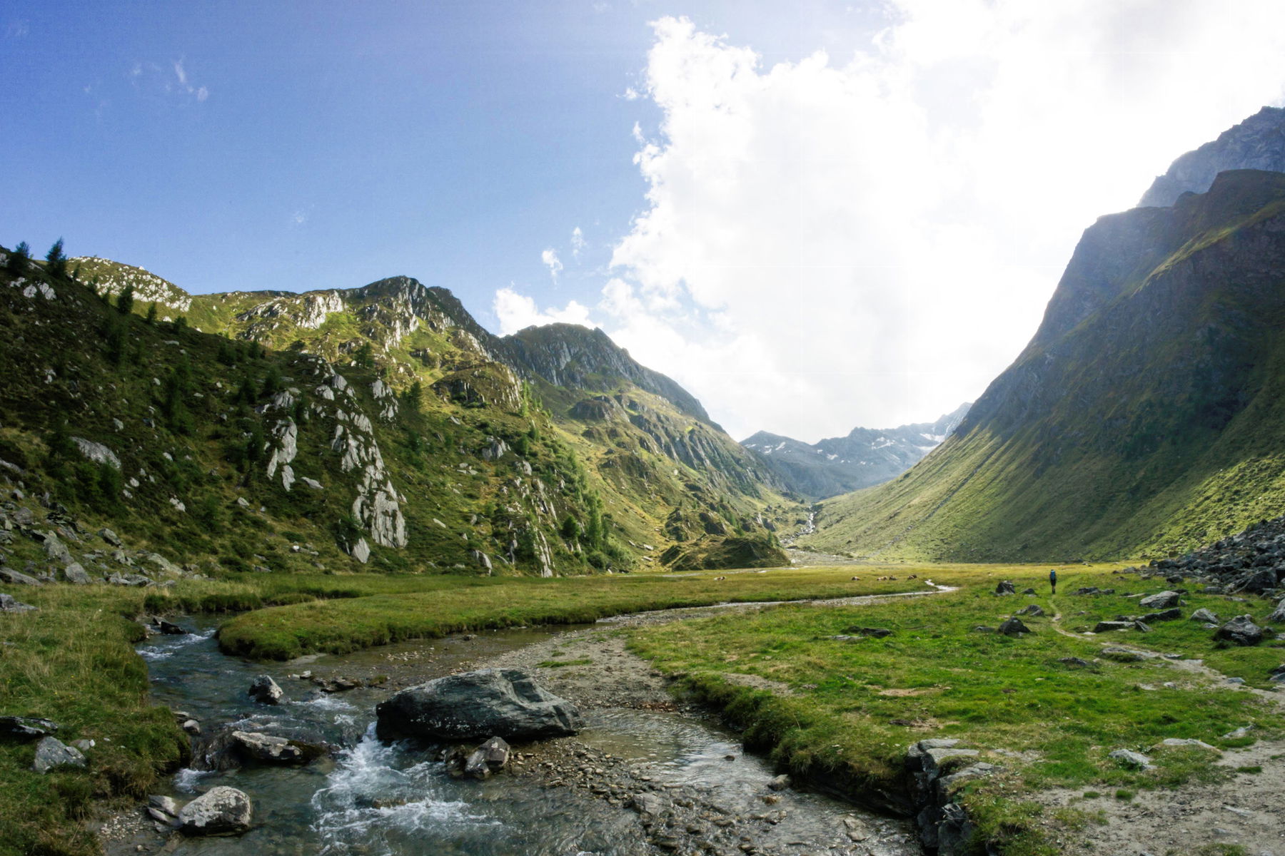 Der nächste Tag führt uns zuerst hinab ins Ahrntal und danach, vor der Ortschaft Kasern wieder links hinauf, durch das bezaubernde Windtal, zur Lenkjöchlhütte.