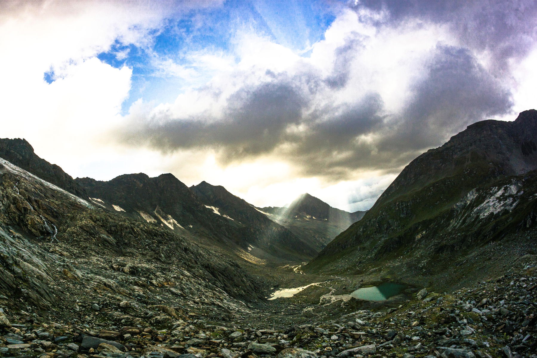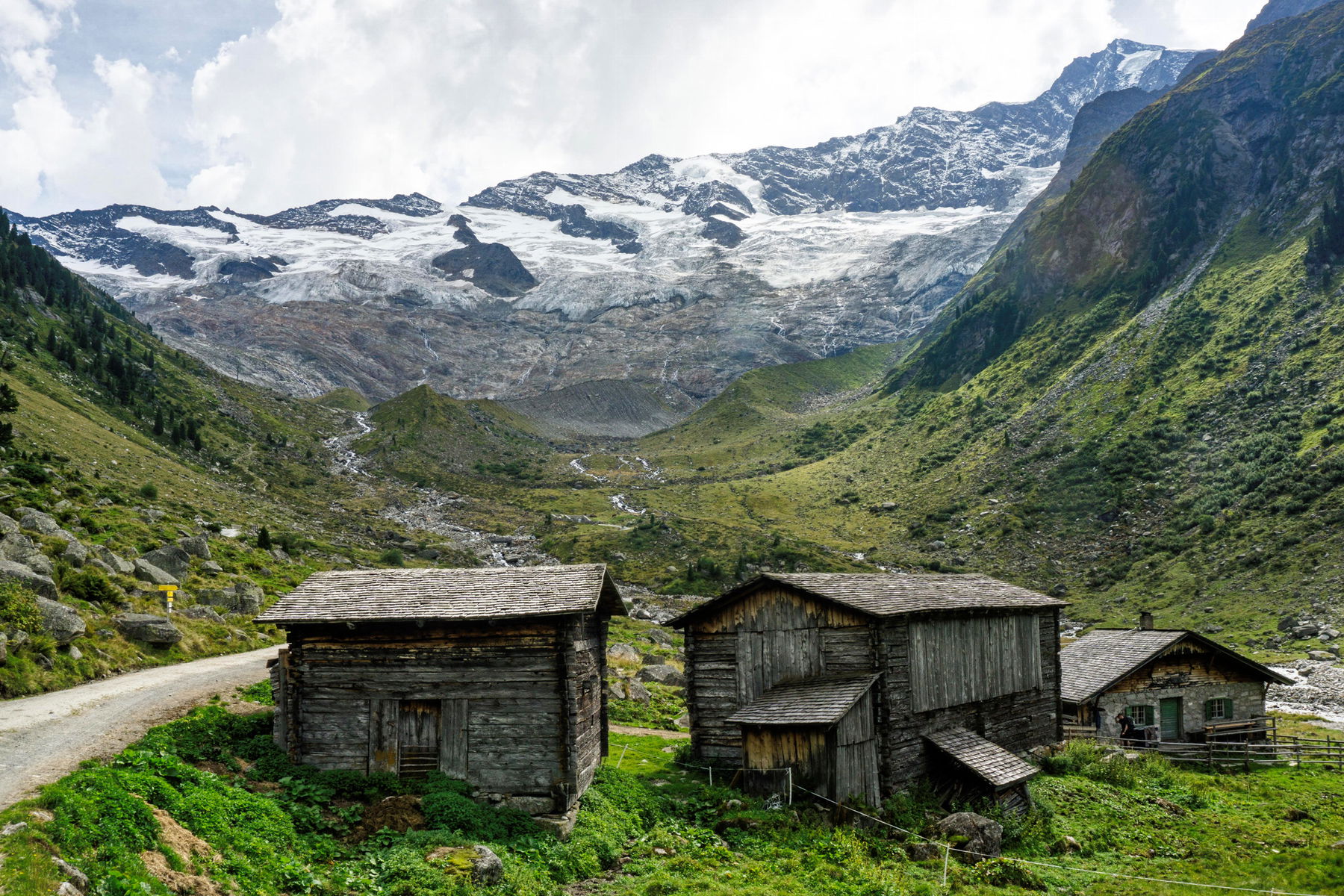 Ab dem Krimmler Tauernhaus wandern wir immer Richtung Süden, bis wir vor uns das Krimmler Kees erblicken und die Innerkeesalm erreichen. Hier zweigt rechter Hand der Wanderweg zur Birnlücke ab, über die wir an diesem Tag den Alpenhauptkamm Richtung Südtirol überqueren werden.
