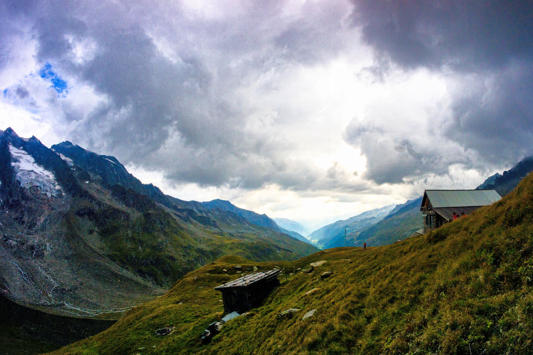 Circa 20 Gehminuten „hinter bzw. unterhalb“ der Birnlücke liegt, auf südtiroler Seite, die Birnlückenhütte, mit wunderschönem Ausblick ins darunterliegende Ahrntal.