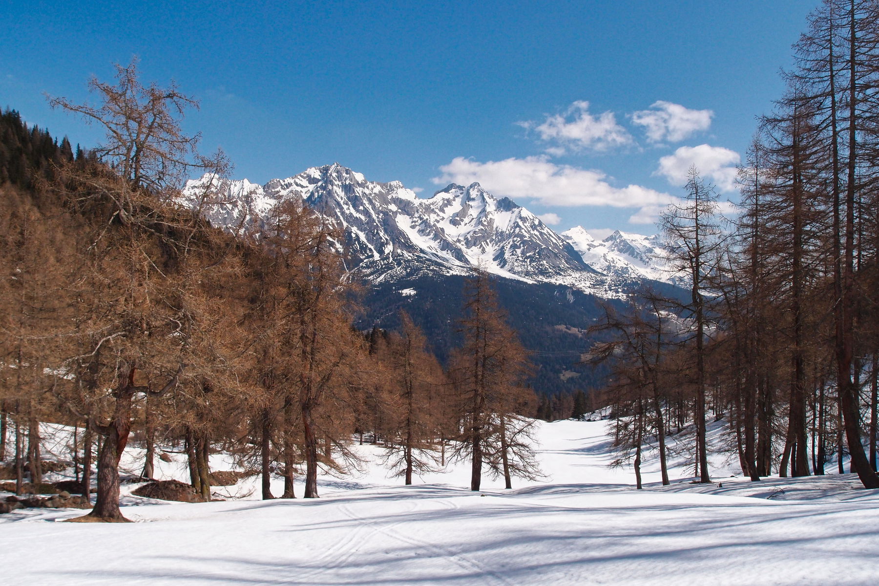 Aus Fahrtrichtung Landeck kommend geht man ein kurzes Stück entlang der Straße zurück, überquert die Rosanna (Fluss) und biegt gleich wieder links ab. Nach der Bahnunterführung (ca. 300 m) wird man im Hochwinter bzw. bei guter Schneelage die Ski anziehen und die erste Kehre abschneiden können. Ansonsten hält man sich entlang des Forstweges. Auf knapp 1200 m zweigt der Sommerweg nach links in den Wald ab. Je nach Schneelage folgt man diesem steil mit den Ski an den Füßen oder tragend. Man kann auch dem Forstweg weiter folgen, allerdings holt dieser sehr weit aus und ist daher vor allem in der Abfahrt zu empfehlen. Auf ca. 1550 m stößt der Wanderweg wieder auf den Forstweg, dem man weiter Richtung Gampernunalpe (1795 m) folgt. Bereits in einer Rechtskurve unterhalb dieser läuft man geradeaus weiter und steuert nach links auf die weitläufige Lichtung zu. Zwischen den herrlichen Lärchen bleibt man weiterhin im Talboden links des Baches und überwindet eine “Steilstufe” mit um die 30°, bevor sich das Gelände zurücklehnt.