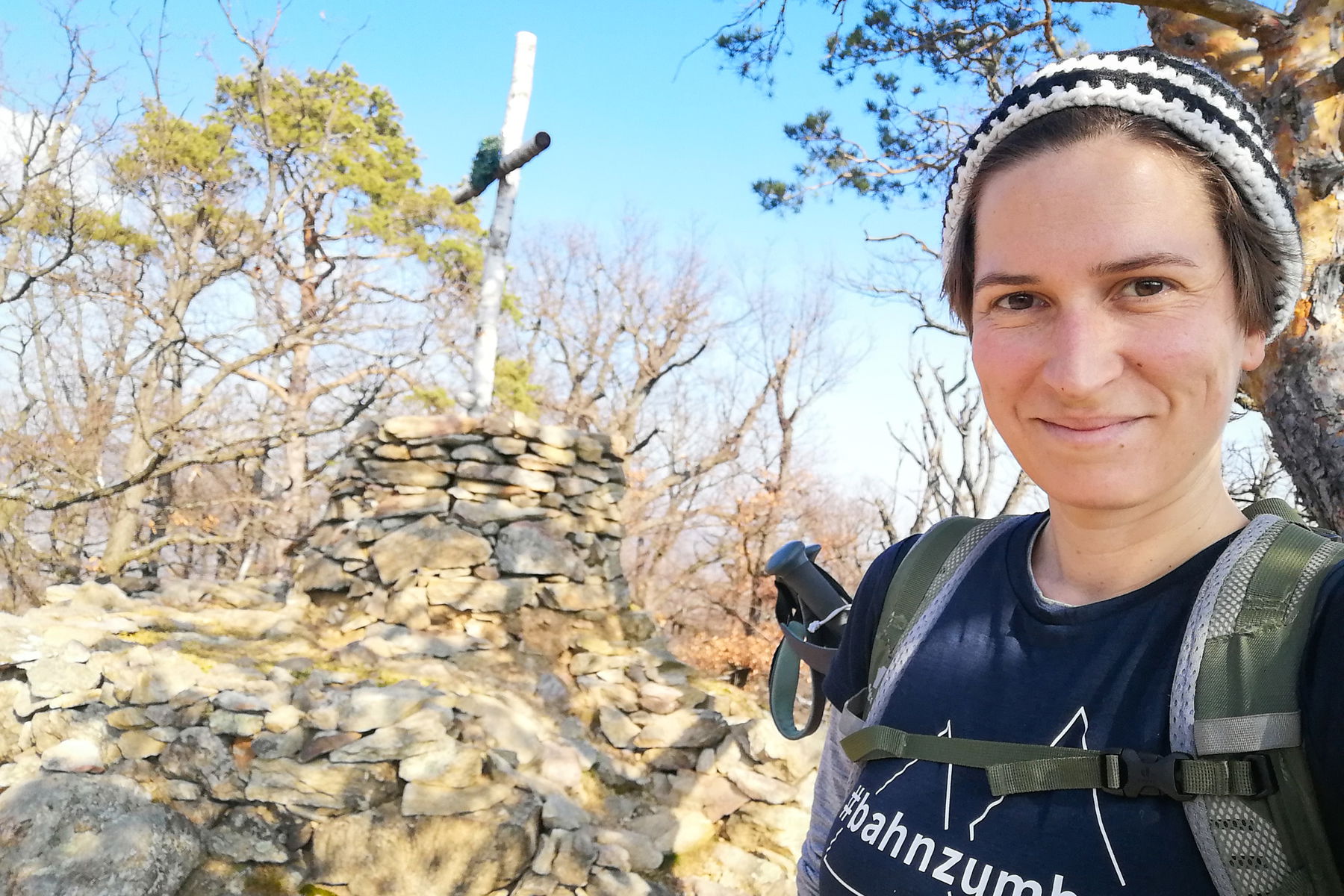 Natürlich siegt die Lust und ich lasse meinen Rucksack unten und mache noch schnell den kleinen Klettersteig mit. Dabei denke ich an Veronika und Silke und erinnere mich an unseren Klettersteigkurs letztes Jahr und den kleinen After-Work-Klettersteig in Gumpoldskirchen. Den wir kaum gefunden haben, kicher. Auch vor (!) der Einkehr beim Weinbauern schon nicht!