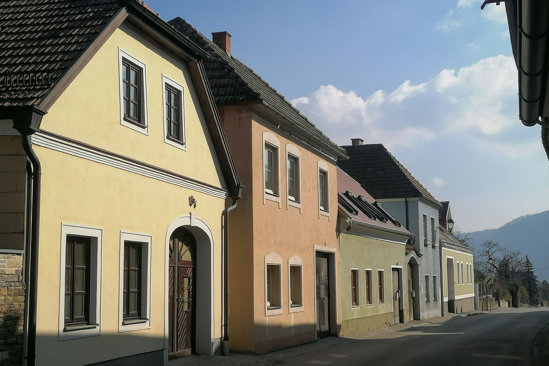 Der kleine Steig im Wildschweingraben verwirrt mich kurz und ich verliere den Weg. Gott sei Dank nicht allzu lang, zum Suchen hab ich nämlich auch keine Zeit. Und siehe da – ich höre die Kirchturmglocken schlagen und im selben Moment wird mir bewusst, dass das bedeutet, dass ich von Rossatz nicht mehr weit entfernt sein kann. Schon sehe ich die Kirchturmspitze auftauchen und komme hinunter an den Marillenwanderweg. Dem folge ich noch wenige Minuten, bevor ich wieder bei der Kirche angelangt bin und damit bei meinem Startpunkt. Ganze sechs (!) Minuten vor Busabfahrt!