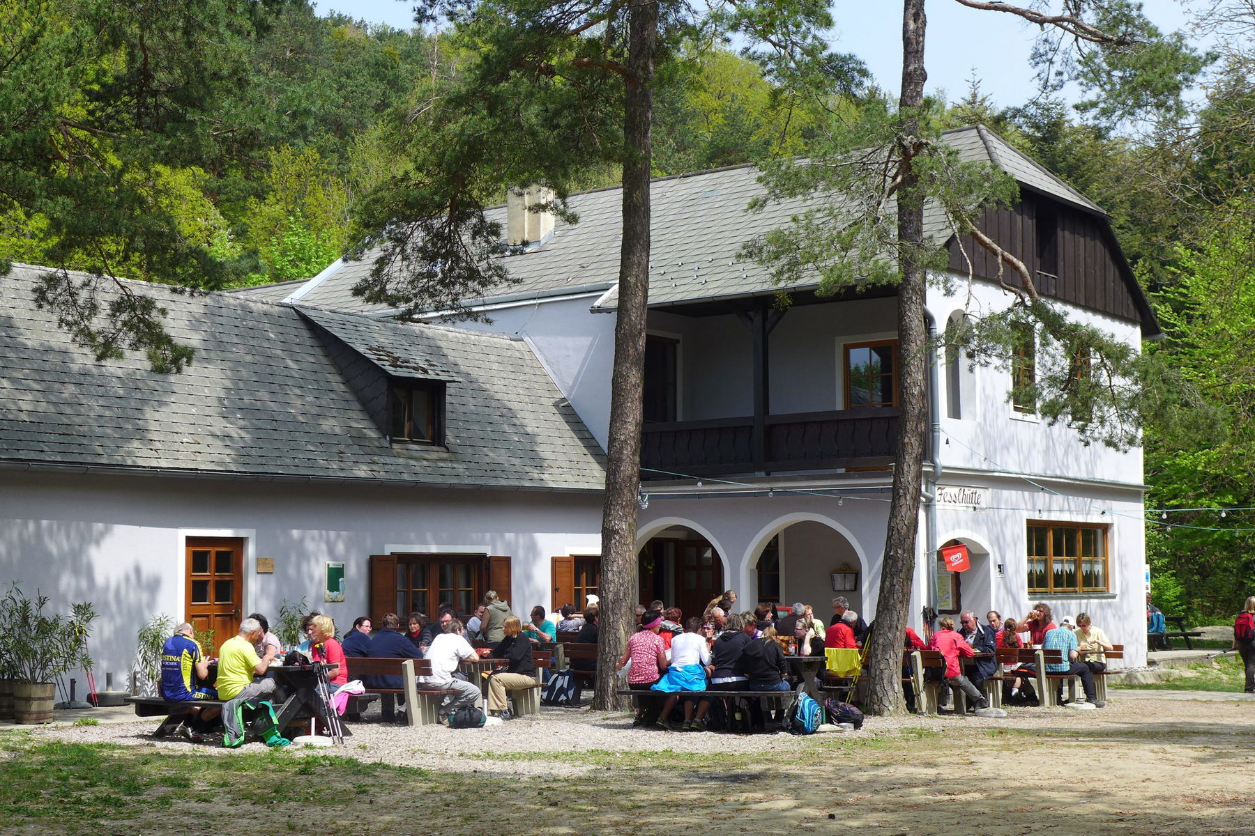 Mit der Fähre nach Rossatzbach und linkshaltend in den Ort (Brunnen) und zur Aggsteiner Straße. Auf dieser rechts und nach dem Heurigen Rehrl-Fischer links in die Weingärten. Auf einer Terrassenstufe eine Gabelung und Richtung Seekopf mit blauer Markierung in den Seegraben (unterwegs Helenenhütte (Unterstand) und Hubertusandacht (Naturdenkmal Roteichengruppe). Auf 550 Meter bei der Gabelung rechts (Weg Nummer 653) ansteigen und nach einem längeren Flachstück links zur Aussichtswarte auf dem Seekopf, 671 Meter. Gehzeit von Rossatzbach bis hierhin: 1 ¾ Stunden.