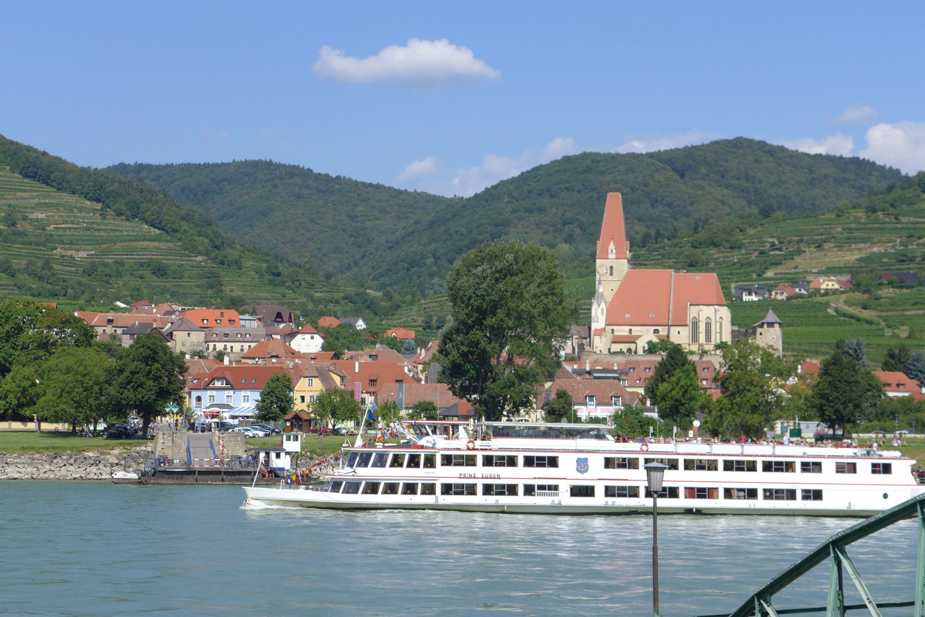 Dann Übergang Richtung Hirschwand zu einer Felsformation. Dahinter die Abzweigung nach St. Lorenz. Abstecher zur Hirschwand lohnend, zuletzt zwei gesicherte Anstiege A-B bzw. B (Stahlseil, Klammern). Ausnehmend romantischer Abstieg (gelbe Markierung) nach St. Lorenz durch die dürren, teils felsdurchsetzten Waldflanken der Steinigen Ries. Immer den weißen Zeichen des Welterbesteigs folgend zu einem baumfreien, teils felsigen Rücken mit großem Gedenkkreuz und Blick auf Weißenkirchen. Dann hinab nach St. Lorenz, auf der Landstraße links und bei der einfachen, bemerkenswerten Filialkirche rechts hinab zur Rollfähre. Jenseits der Donau in Weißenkirchen zum Bushalt bzw. geradewegs zur Pfarrkirche und rechts in Kürze zum Bahnhof. Gehzeit vom Seekopf bis hierhin: 1 ¾ Stunden.