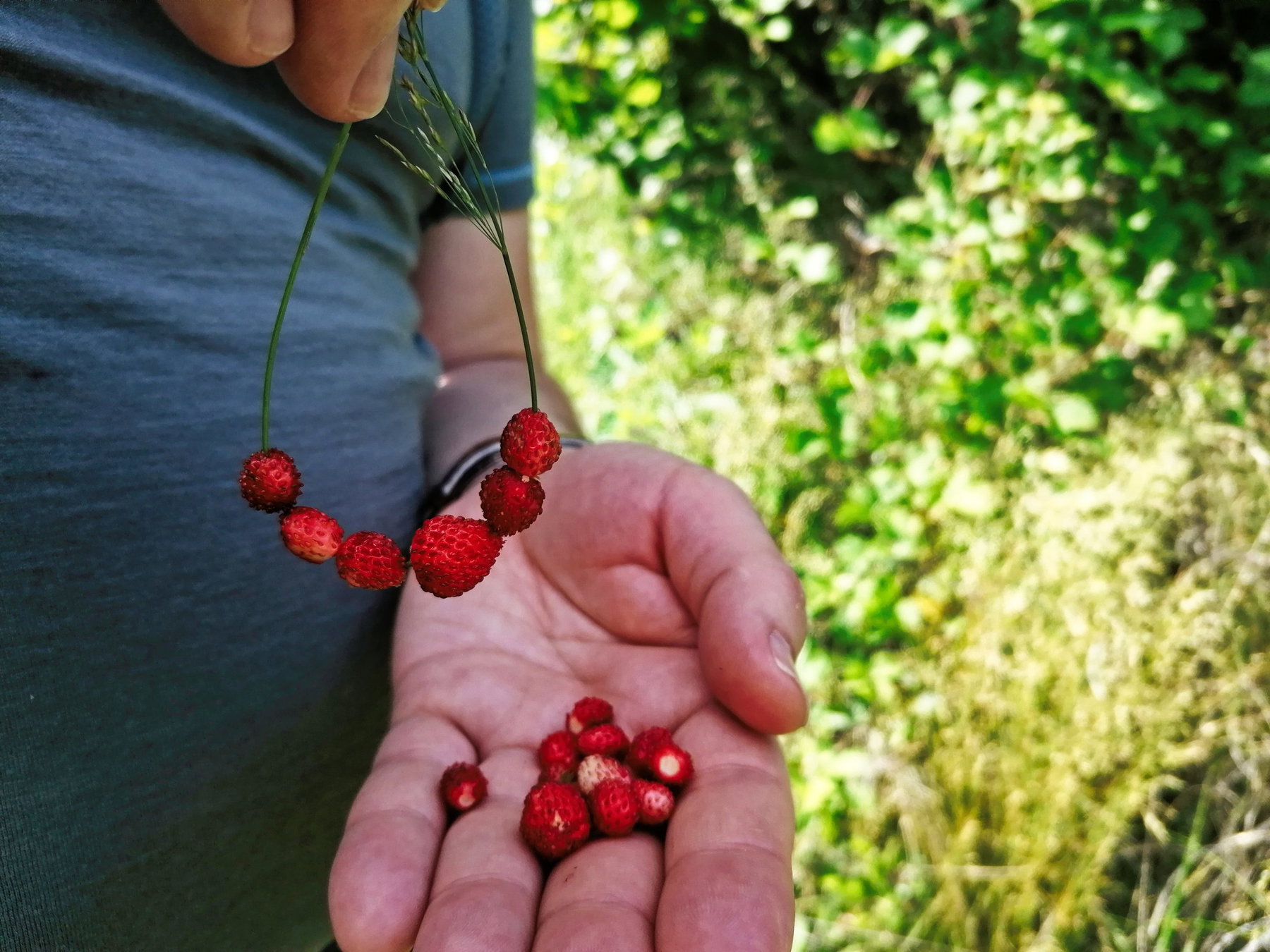Nach der Buschandlwand entscheiden wir uns für den blau markierten Weg nach Wösendorf. Er führt großteils wieder nur durch den Wald, ohne nennenswerte Ausblicke – dafür aber wieder mit tollen Walderdbeerenpassagen.