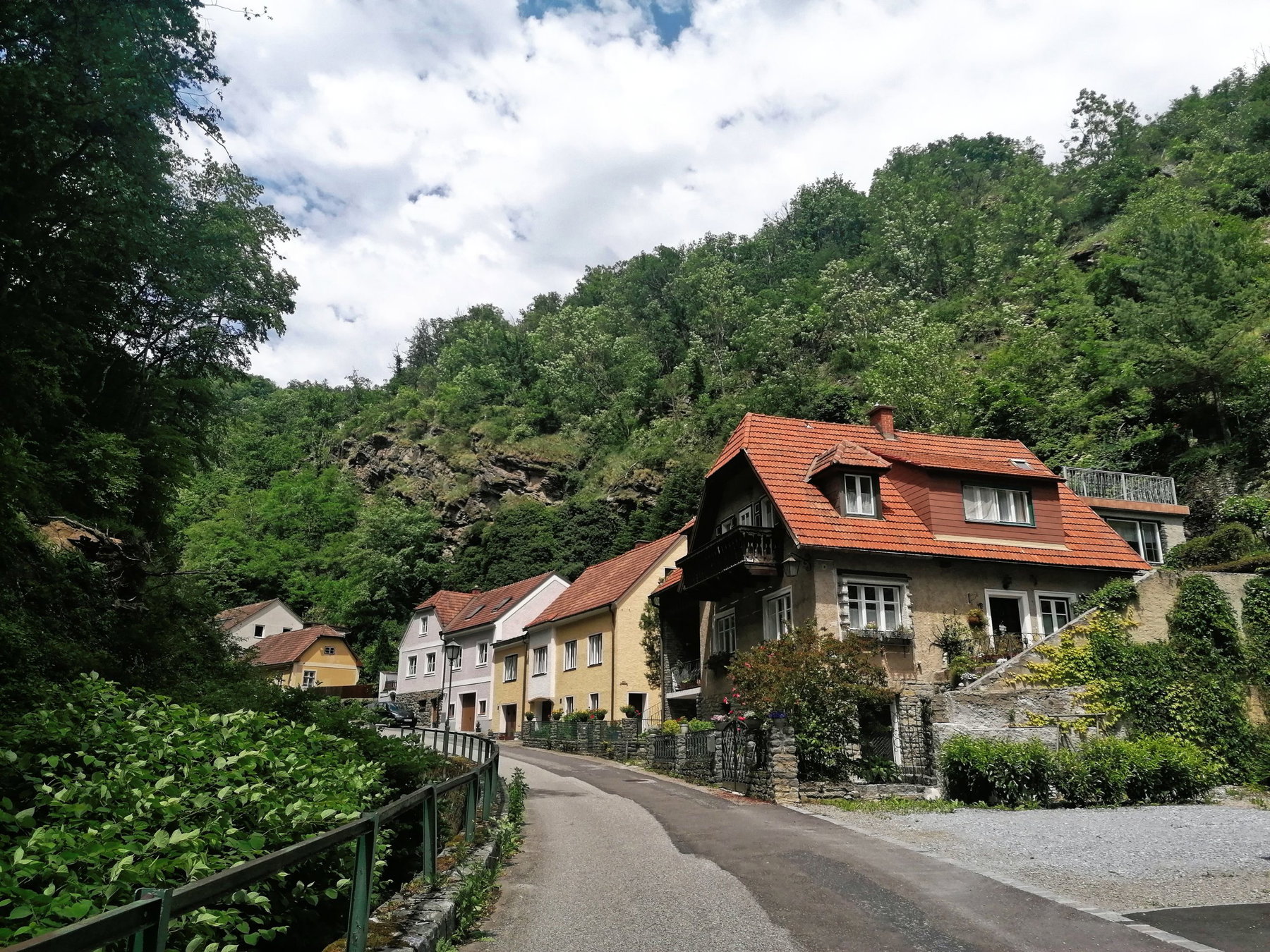 Das Mieslingstal mit seinem schattigen Verlauf entlang des Mieslingbaches, den hübschen Häusern, dem Film-Hotel Mariandl und dem Duft nach Jasmin (ja, tatsächlich!) gefällt uns sehr, leider müssen wir uns schon recht bald von ihm verabschieden.
