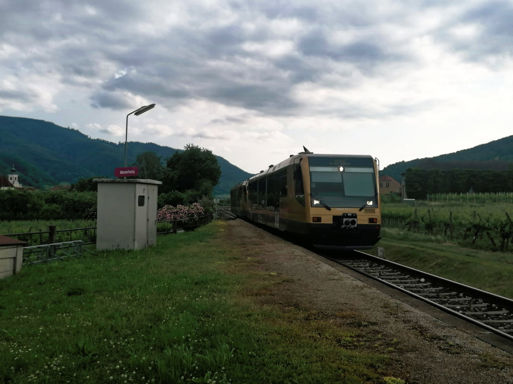 Die 19 Minuten Umsteigezeit in Melk erweisen sich als praktisch, weil der Zug gleich mal 15 Minuten Verspätung hat. Im 715er-Bus bin ich dann unaufmerksam und wir steigen zu früh aus (bei „Spitz/Donau Hinterhaus“ statt wie geplant bei „Spitz/Donau Fähre“).