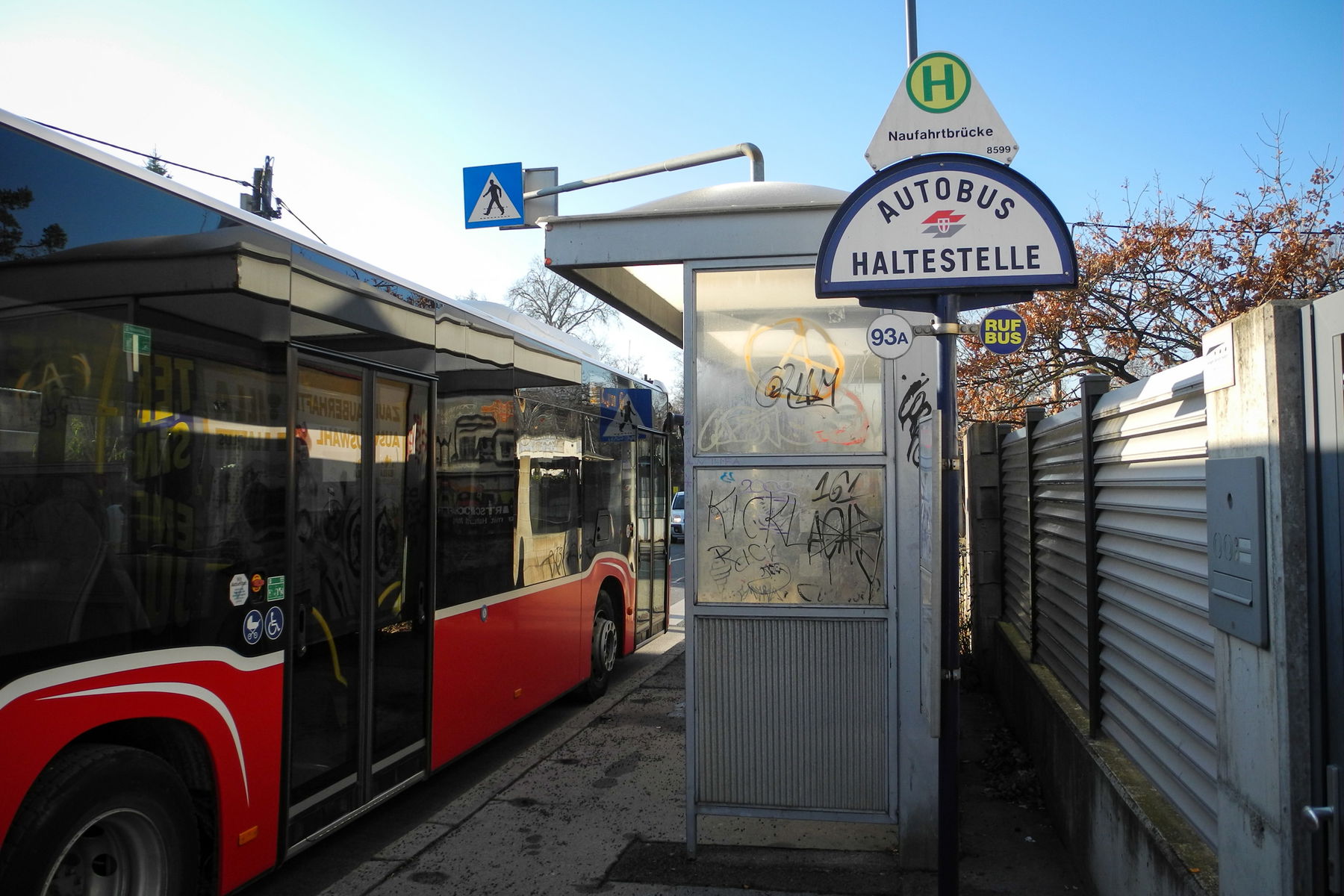 Die Buslinie 93 A bringt mich in 15 Minuten von der U2-Station Aspernstraße bis zur Haltestelle Naufahrtbücke. Wenige Meter nach der Bushaltestelle biege ich links auf den Naufahrtweg ein und wechsle bei der ersten Gelegenheit auf den kleinen Fußweg, der direkt am Altarm mit dem Namen „Alte Naufahrt“ entlangführt.