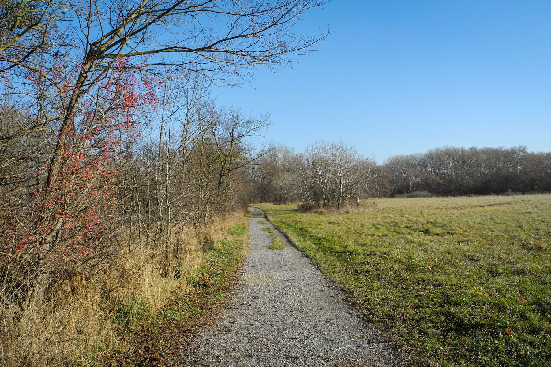 Dort gibt es eine große Übersichtstafel der Oberen Lobau und ich wähle den Fußweg, der direkt zum Josefsteg führt. Er führt über eine sogenannte Heißlände mit savannenartiger Vegetation. Im Frühjahr gibt es hier die seltene Zwergschwertlilie und verschiedene Orchideenarten zu bewundern.
