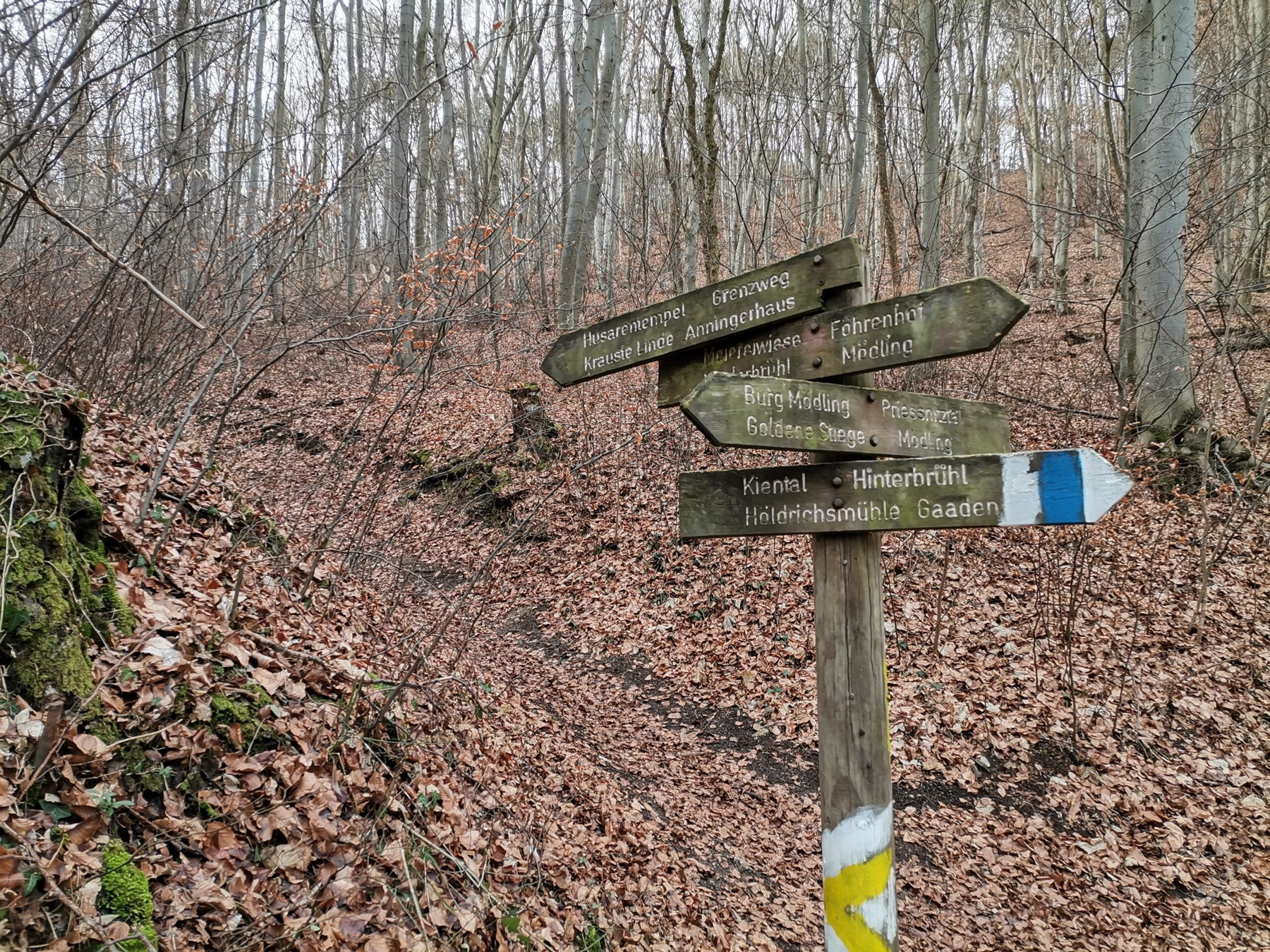 Die Fülle an verschiedenen Wegen im Naturpark Föhrenberge hat mich ein wenig überfordert, es gibt also sicher elegantere Wege, um den Husarentempel zu erreichen 🙂