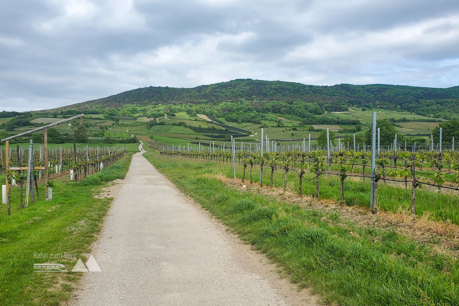 Um 8:51 Uhr ging es vom Praterstern mit der S3 nach Pfaffstätten, wo ich um 9:40 angekommen bin. Vom Bahnhof mache ich mich auf den Weg zu meinem ersten Ziel – den Pfaffstättner Kogel. Dafür ging ich vom Bahnsteig nach recht entlang der Gmöslgasse bis diese nach links überläuft ins Gmöslstraßl. Vorbei an den ersten Weinbergen folge ich der Straße bis zur ersten Kreuzung, welche ich überkreuze und der Forststraße geradeaus folge.