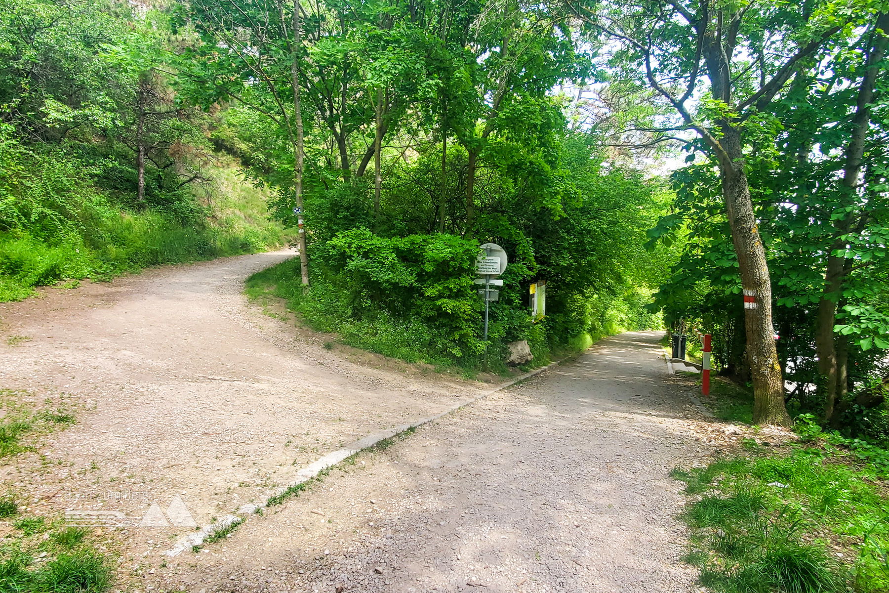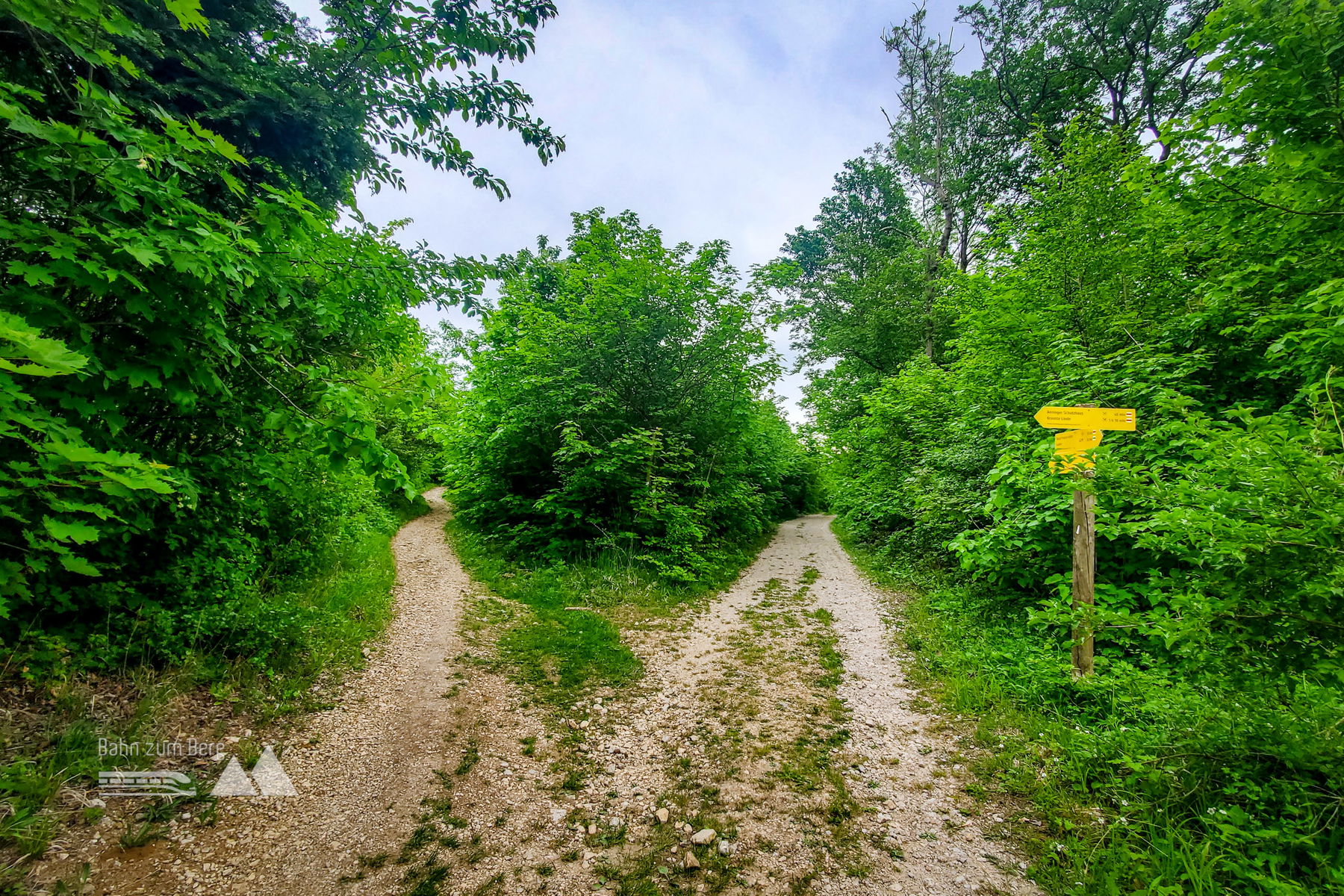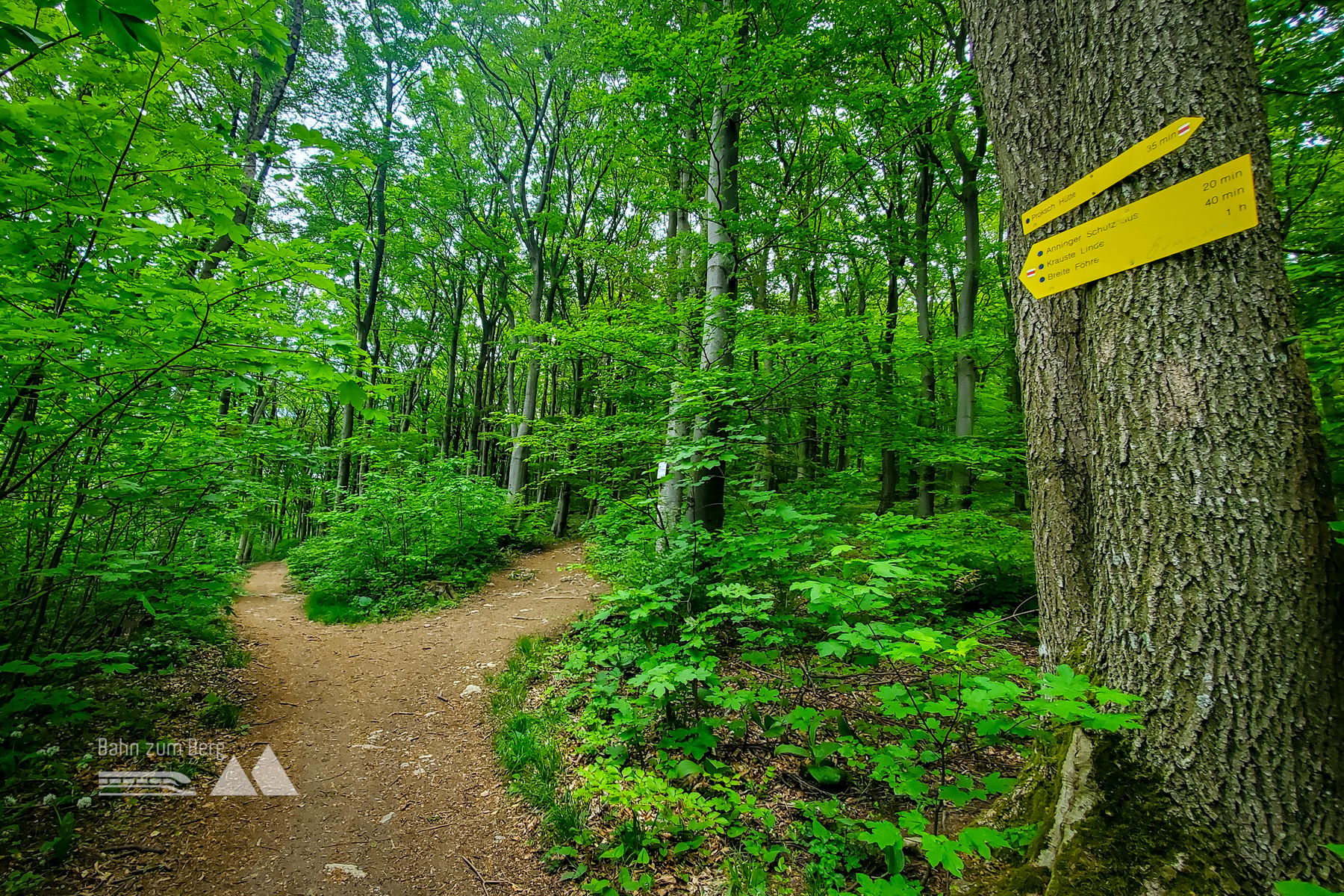 An einer Abzweigung nach etwa 1,3 Kilometern biege ich nach links ab in einen etwas dichter bewachsenen und schmäleren Weg. Bei der nächsten Kreuzung nach etwa 200 Metern biege in nach rechts ab und von hier geradeaus bis zum nächsten Wegweißer, bei welchem ich mich dann leicht rechts halte Richtung Mödling.