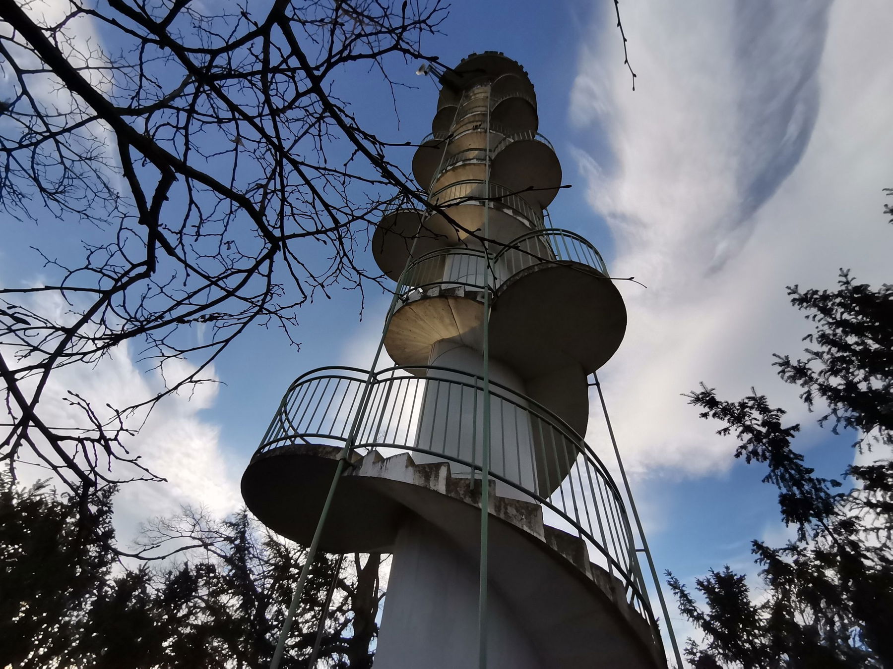 Ich kehre wieder zurück zur Johann Staud Straße, die eigentlich bis zur Jubiläumswarte führt. Biege hier aber nach rechts in den Wald ab und wandere bis zur Warte und Waldschule. Hier fällt mir das erste Mal ein Stadtwanderweg Holzpfeil mit der Bezeichnung 4A auf. Sehr hilfreich. Es geht weiter zur Kreuzeichenwiese.
