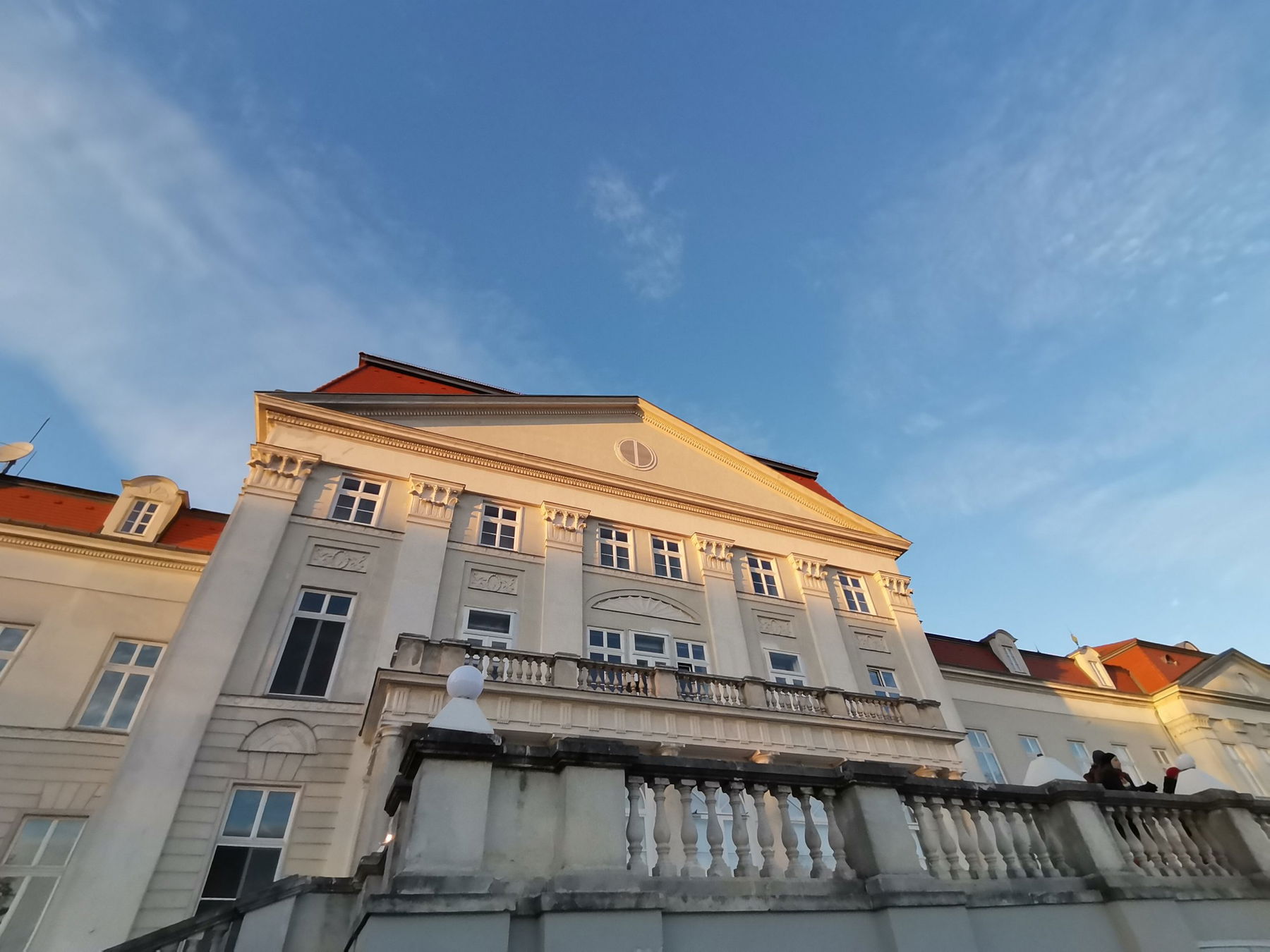 Genug Geschichte. Ich widme mich dem Sonnenuntergang und wandere rund um das Schloss zur vorgelagerten Wiese. Ich bin nicht die einzige. Gemeinsam beobachte ich mit einigen anderen Frischluftenthusiasten, wie die hinter den Bäumen untergehende Sonne Stadt und Schloss (Titelbild) in ein sanftes rosa Licht taucht.