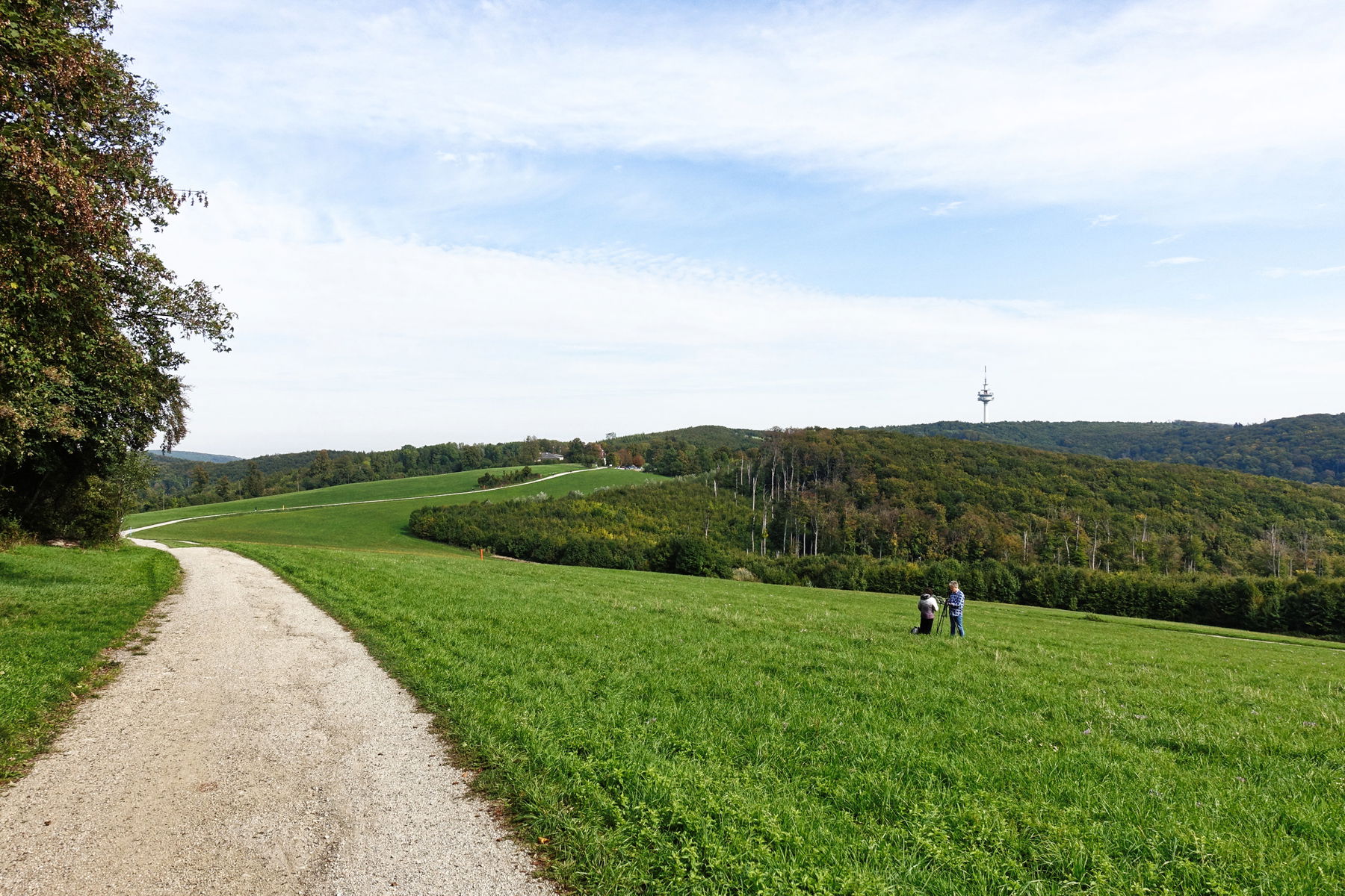 In der Ferne sehen wir den Turm am Exelberg, ein Fernmeldeturm von 109 Metern Höhe. Eigentümerin ist die A1 Telekom Austria.