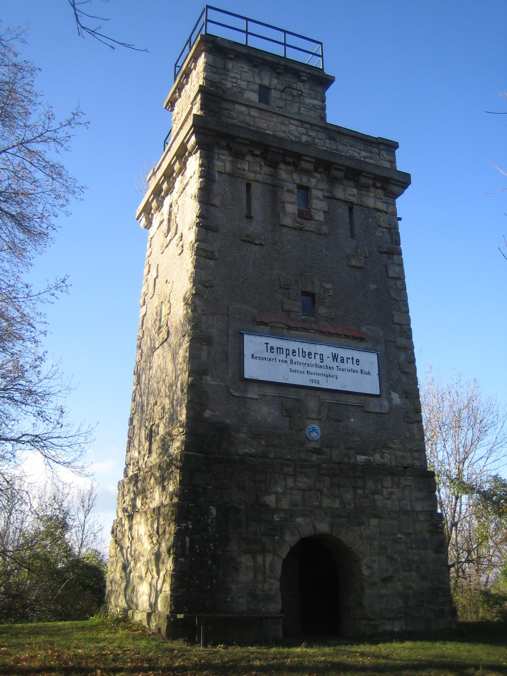 Die Tour beginnt am Bahnhof Greifenstein-Altenberg. Wir gehen an der Straße circa 200 Meter retour Richtung Wien und biegen dann rechts in die Johann Staud Gasse auf den Klotzbergsteig ein. Die ersten circa 700 Meter gehen die Straße hinauf, welche dann nach rechts abbiegt, während der Weg geradeaus weitergeht. Kurz vor Hadersfeld bietet sich nach rechts ein Abstecher zur Tempelbergwarte mit einem großartigen Blick ins Tullnerfeld an – die Tempelbergwarte ist vermutlich die nördlichste Aussichtswarte der gesamten Alpen!