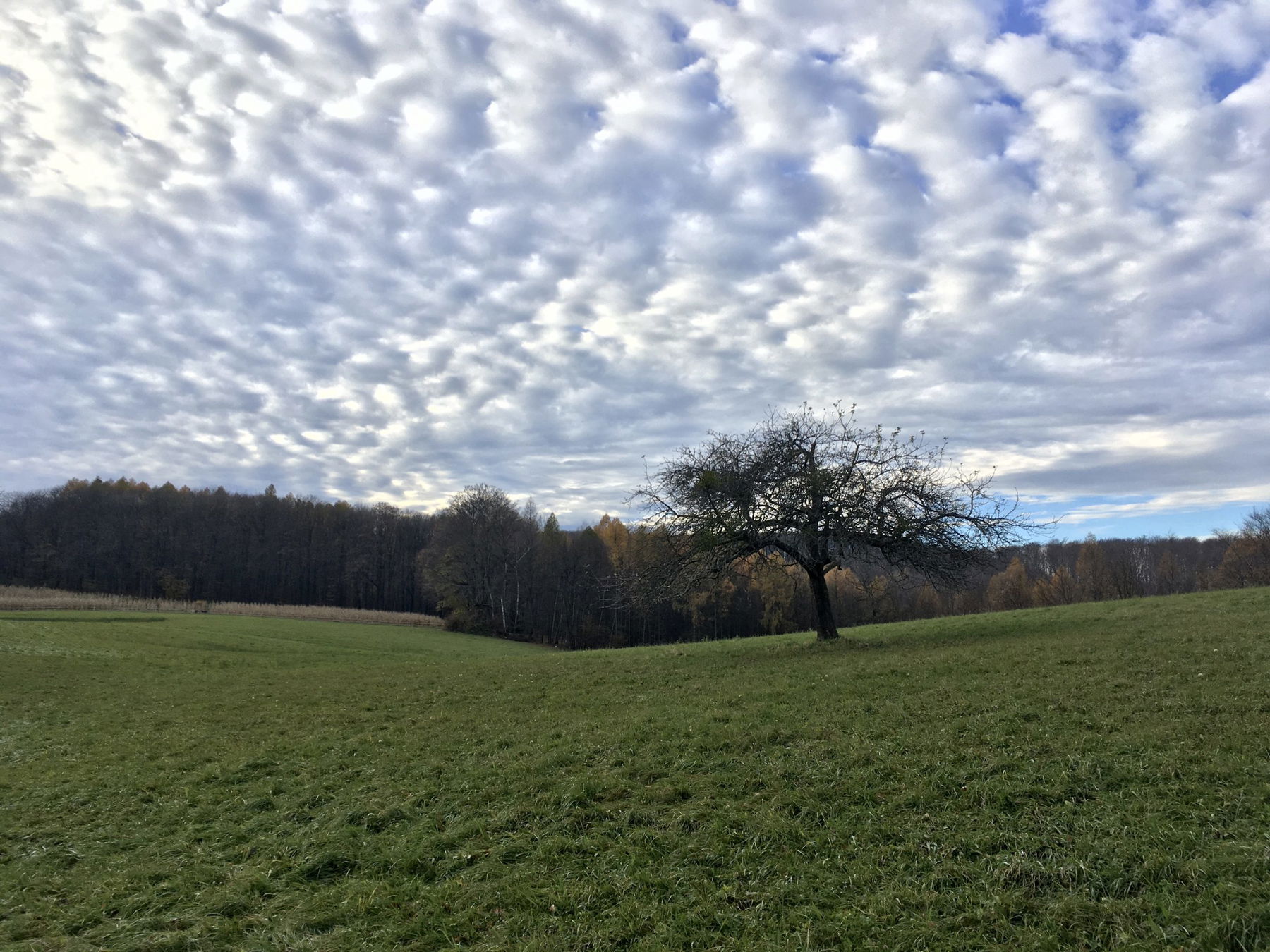 Wir gehen nicht den gleichen Weg zurück, sondern weiter über den Moosbrunner Boden zur Sofienalpe. (Wegweiser bei der Hütte) Dabei kommen wir an einer großen Streuobstwiese vorbei und an einem kleinen Tümpel.